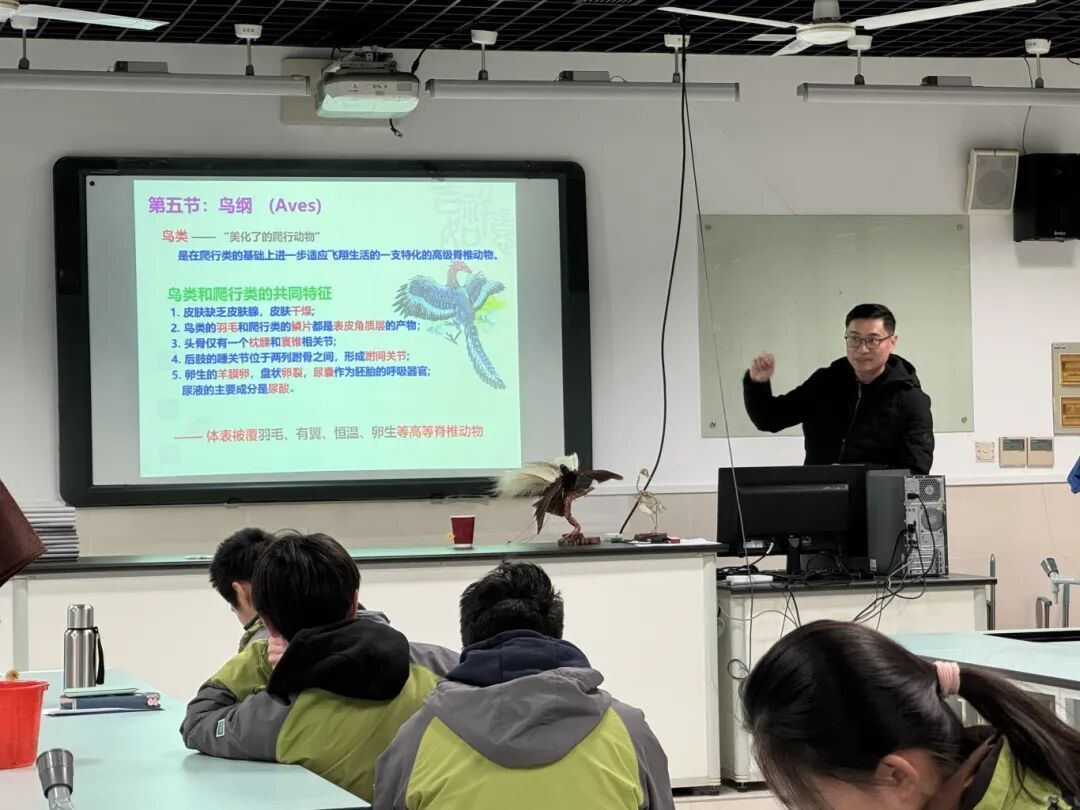 鸟类调查环节中,上海师范大学副教授蒋韦斌延续课程“从特征到规律”的探究逻辑,先从鸟类的外形特征娓娓道来,系统解析流线型身体、分层羽毛结构、多样翅膀形态等适配飞行的外部特质;再层层深入,揭秘骨骼中空、胸肌发达、高效供氧呼吸系统等支撑翱翔的内部生理优势,一步步为同学们解锁鸟类驰骋天际的生物学密码。