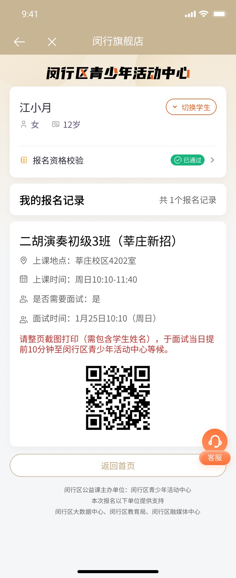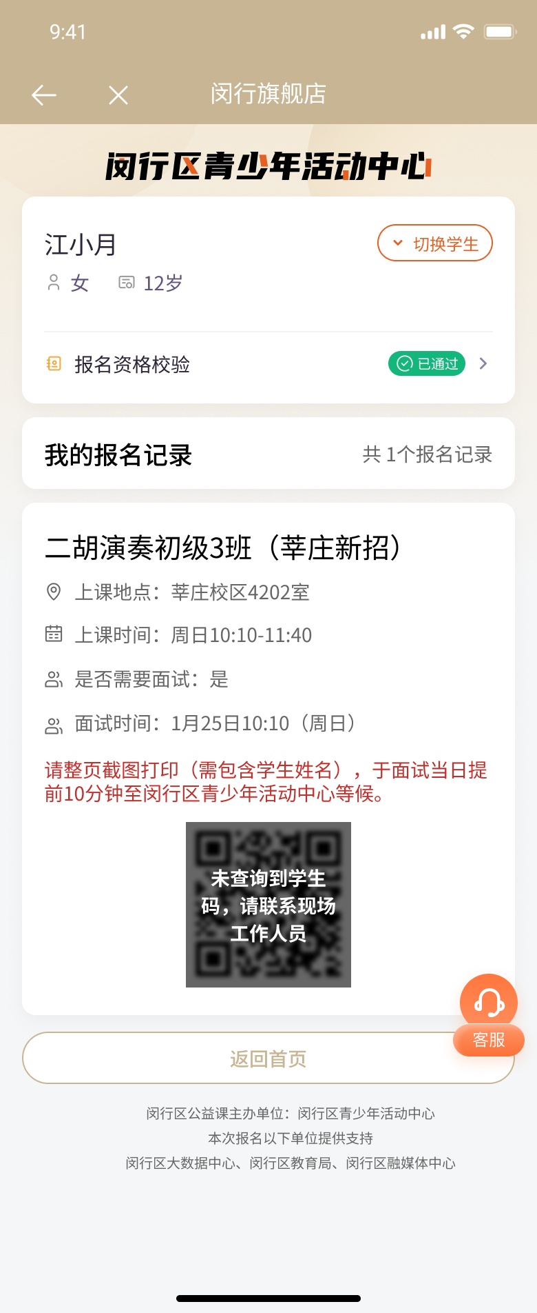 1.部分需要面试课程将于1月24日(周六)、1月25日(周日)进行面试。请提前预留时间。家长须截图打印报名成功的“面试证”,学生根据课程相应的面试时间凭面试证进入中心“独立”参加面试。无法出示“面试证”或者与面试者本人信息不一致,取消面试资格。
