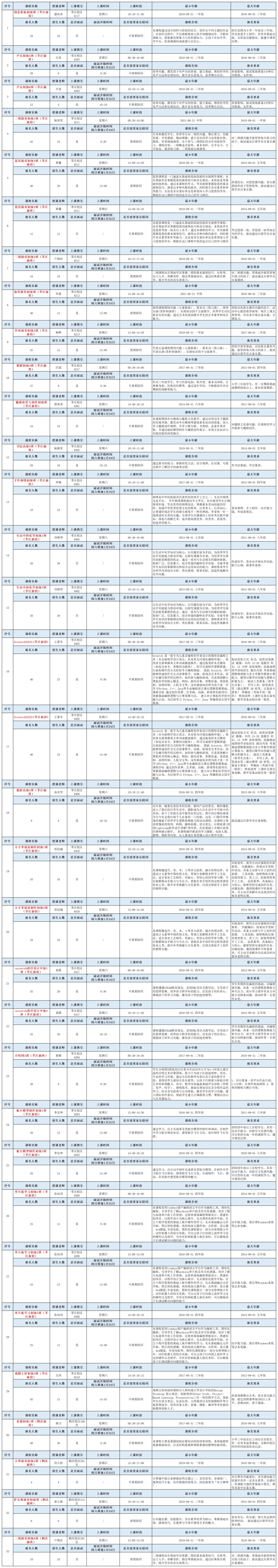 2025学年第二学期招生一览表