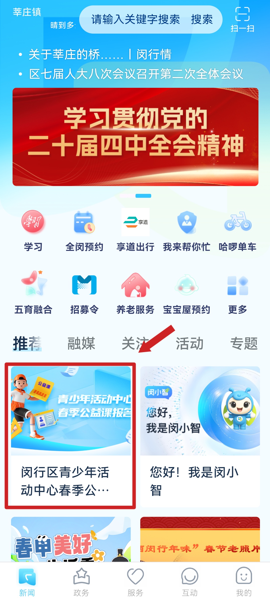 在“今日闵行”App,首页推荐—【春季公益课报名】或搜索【闵行旗舰店—闵行区青少年活动中心—课程报名】