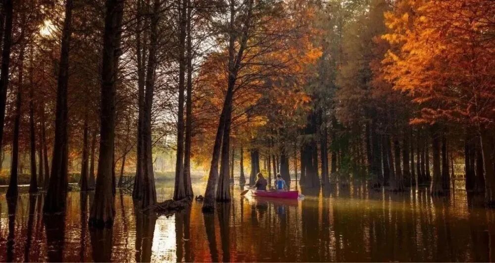 若想感受江海交汇的浩然之气,西沙·明珠湖景区是不可错过的一站。这个季节的西沙湿地有着冬日里的红色浪漫,水杉林悄然换上了“红装”。你可以骑行于环湖绿道,感受湖风拂面;或乘一艘小船,缓缓驶入长江口,看浑黄的江水与碧蓝的湖水在此相遇、交融,体会“一脚踏两水”的奇妙。作为长江地区唯一一个珍禽放飞表演,大雁放飞是明珠湖公园内的热门项目。成群结队的珍禽掠过游人头顶、浮游明珠湖湖面,轻盈曼妙、挥翅长鸣。
