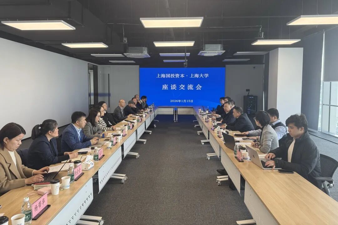 2026年1月15日上午,上海国有资本投资有限公司党委书记、董事长袁国华一行访问上海大学,校党委书记吴坚勇出席座谈会。双方围绕深化战略合作、协同推进科技成果转化、共建高质量创新生态等议题举行深入工作会谈。上海国投公司副总裁许业荣,上海国投公司科创总监、上海科创集团党委书记、董事长朱民,上海大学副校长张建华等出席座谈。