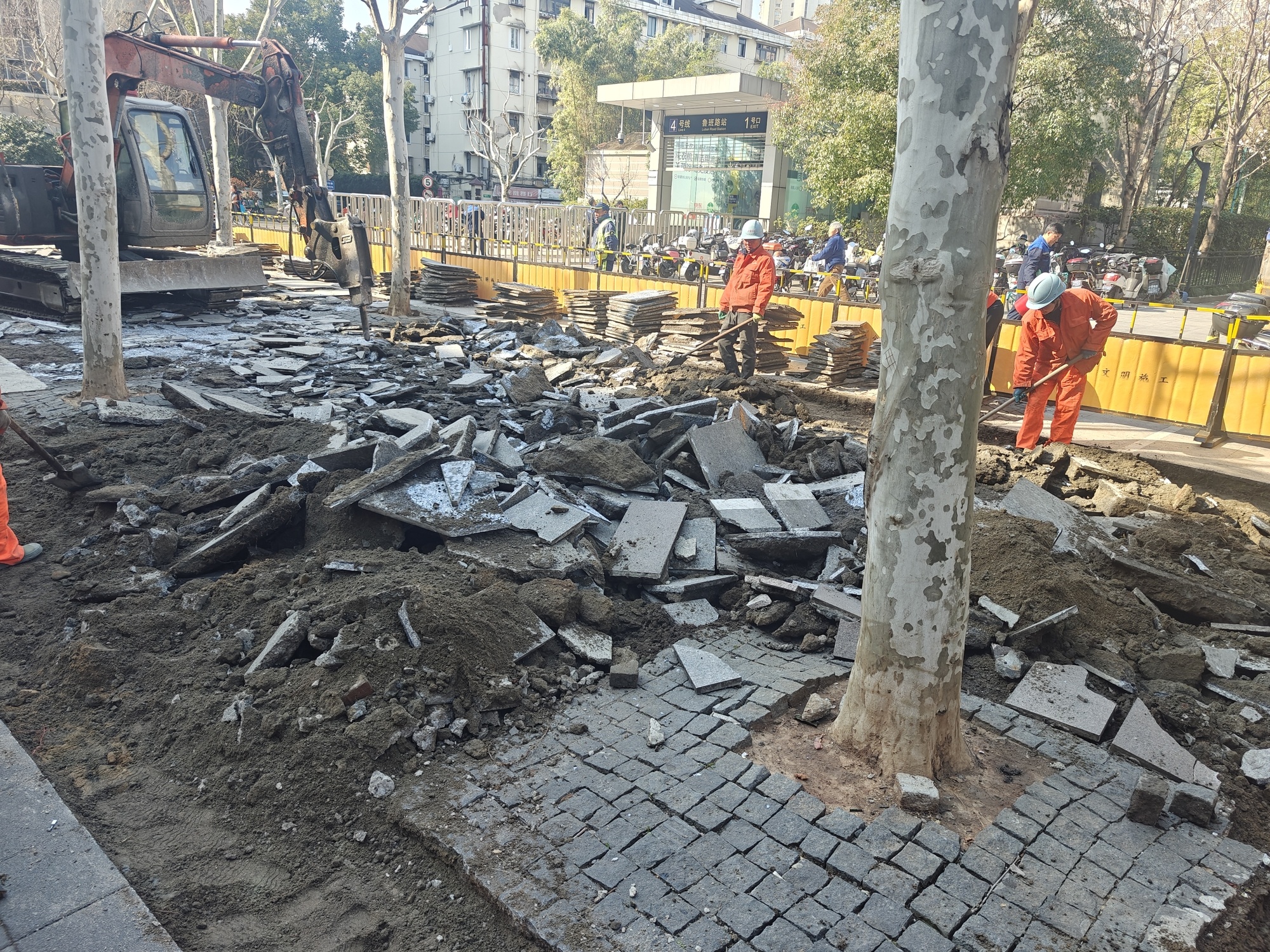 地铁四号线鲁班路站出口广场,是周边居民和通勤族每日必经的公共空间。然而,由于权责归属不清,这个1717平方米的区域曾陷入“管理真空”:地面铺装破损严重,车辆停放混乱,既影响市容,也存在安全隐患,成为居民反映强烈的痛点。