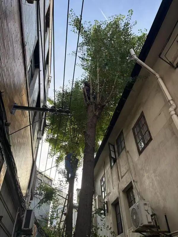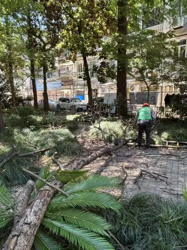 面对这一交织着安全、民生与法律的治理难题,街道会同区绿化市容局、房管局、财政局、城管执法局及永业集团(其下属卢湾公房公司、金锐建设公司)组建了工作专班。各部门的紧密协作,为破解困局提供了关键支撑:绿化部门依法完成权属认定,明确了公房、私房、商品房等不同区域树木的养护责任主体;房管和财政部门共同落实了整治与长效养护的资金渠道;执法部门则强化了监督保障。