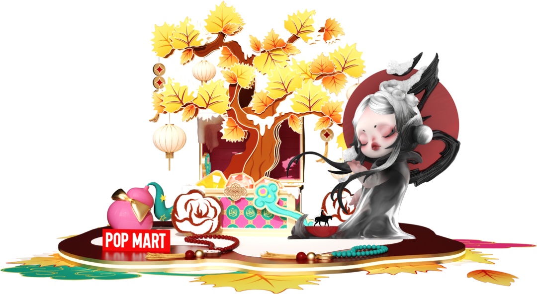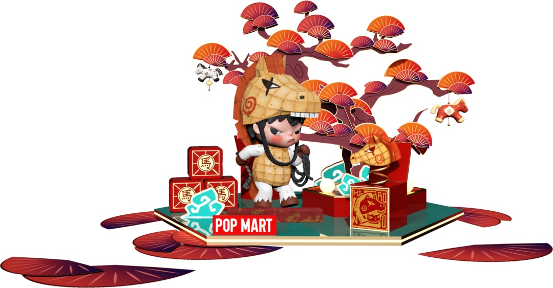 随着灯光探寻,南区入口处,MOLLY化身财富使者,热情邀约每一位来访者踏入流光溢彩的梦幻天地。移步至南区内部,一条充满惊喜的新春祈福之路铺展开来:一层,Hirono小野以马年花灯登场,执鞭踏夜而来,寓意“马上福到”;二层,BABYMOLLY头戴“小马” 帽子跃动起舞,带来满满的“金运摇来”;三层,SKULLPANDA以王羲之书法“马”字为灵感,驭梦驰行。在南区五层露台,星星人以青花瓷为灵感,幽蓝枝蔓间骏马驰骋星河,传递着如瓷韵般悠长的美好期许。