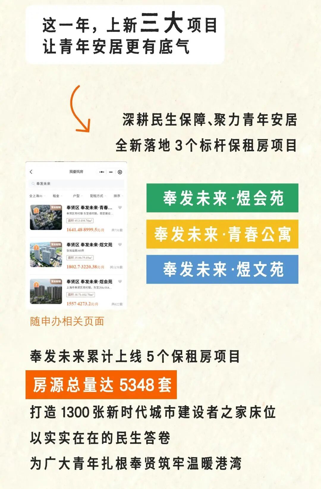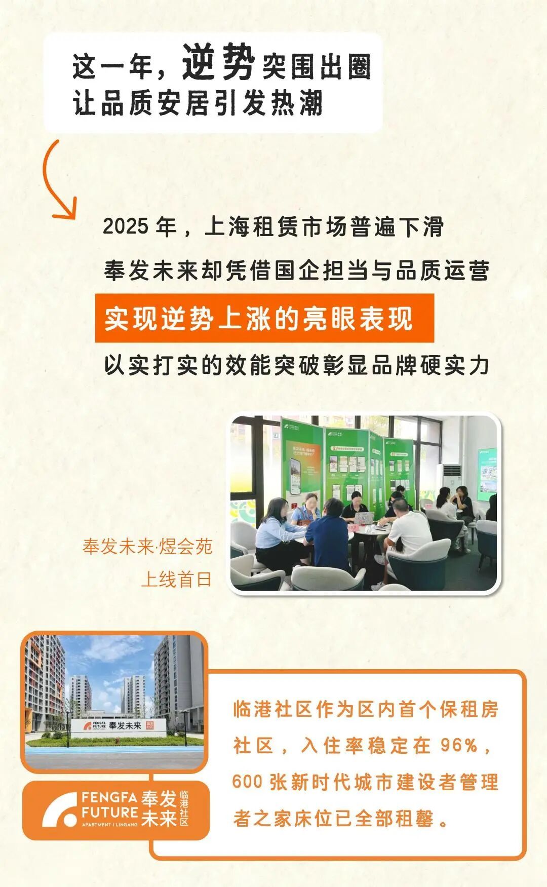 奉发未来是奉发集团立足奉贤本土打造的保障性租赁住房品牌。自创立以来便以国企担当,加速为广大青年构建起安居乐业的新生态。已累计上线区内首个保租房社区“奉发未来·临港社区”、新城范围内首个保租房社区“奉发未来·煜丰苑”等五大社区,提供超五千套优质房源。