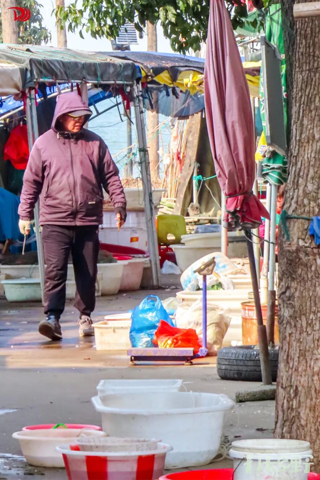 冬日的码头褪去了夏日的喧嚣,却更显质朴。渔民们将清晨捕捞的湖鲜摆在路边,形成了一个天然新鲜的“湖鲜市集”。