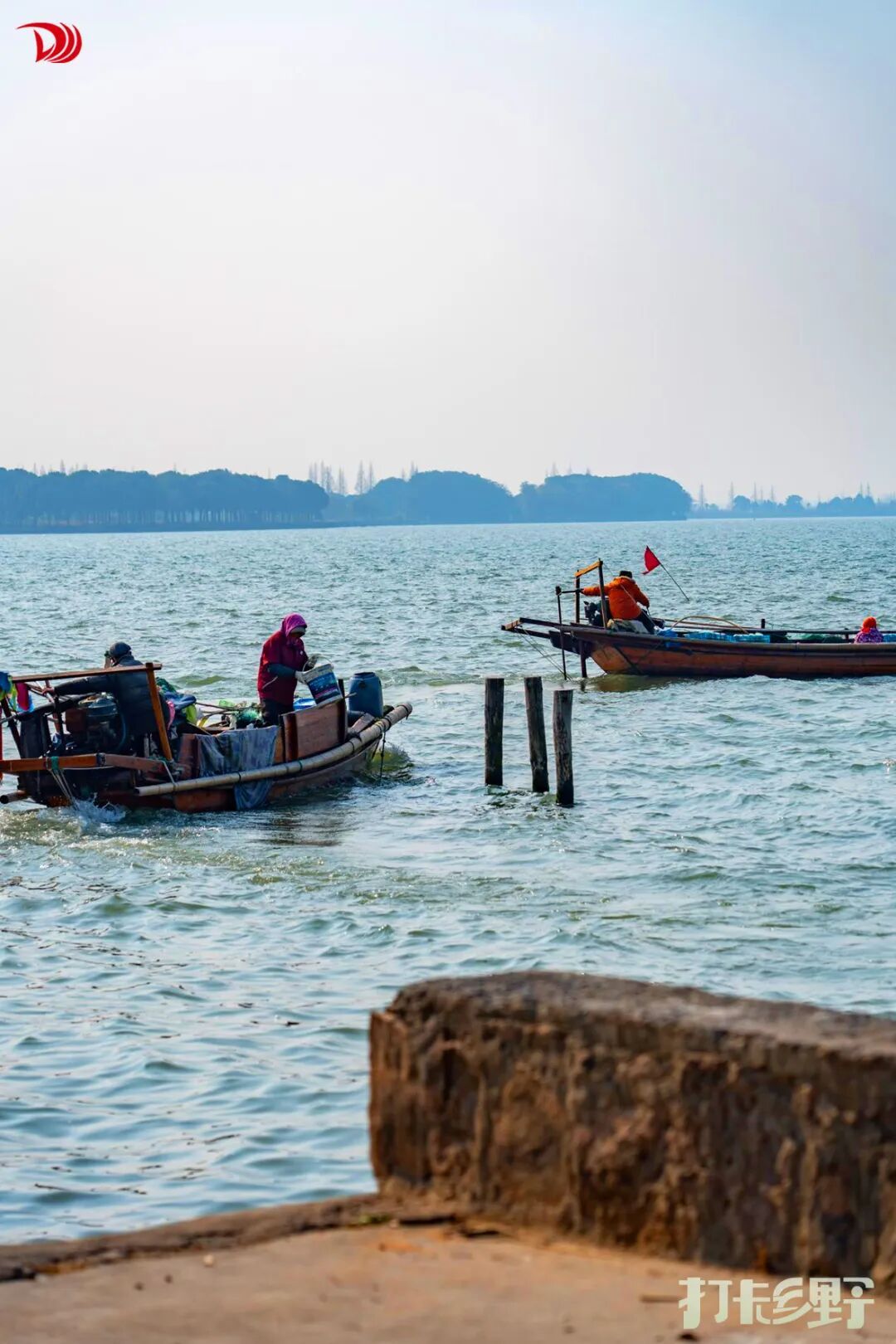 走栈道:湖边的木质栈道依然开放。虽然没有拍到夕阳,但下午开阔的湖面、远处行驶的渔船,构成一幅宁静的冬日水乡图,也很适合拍照打卡哦!