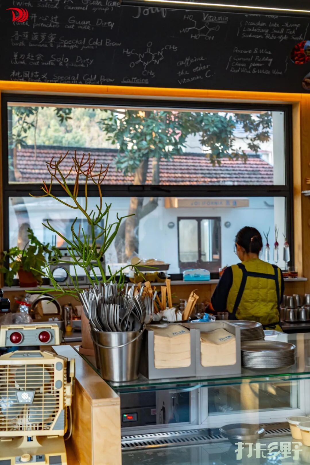 渔村里“最潮”的地方,是由老水厂改造的“水场Jolifornia”。在村里逛得身子有些发冷时,正好进去取暖。