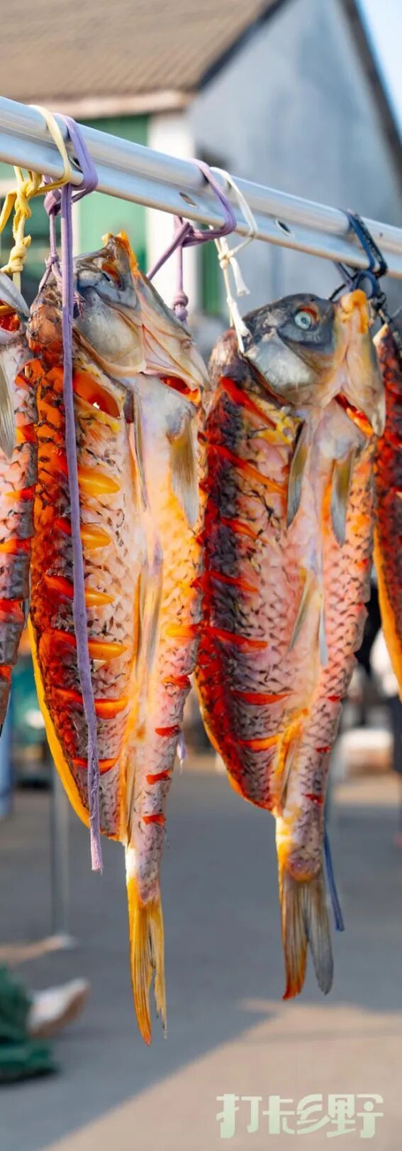 家家户户的门前、窗边,甚至庭院里支起的竹架上,都挂满了一条条腌晒好的鱼。在冬日干燥的空气中,它们散发着独特的气息,成为渔村最直观的招牌。有些是整条的大鱼剖开晾晒,有些则是小鱼串成一串。