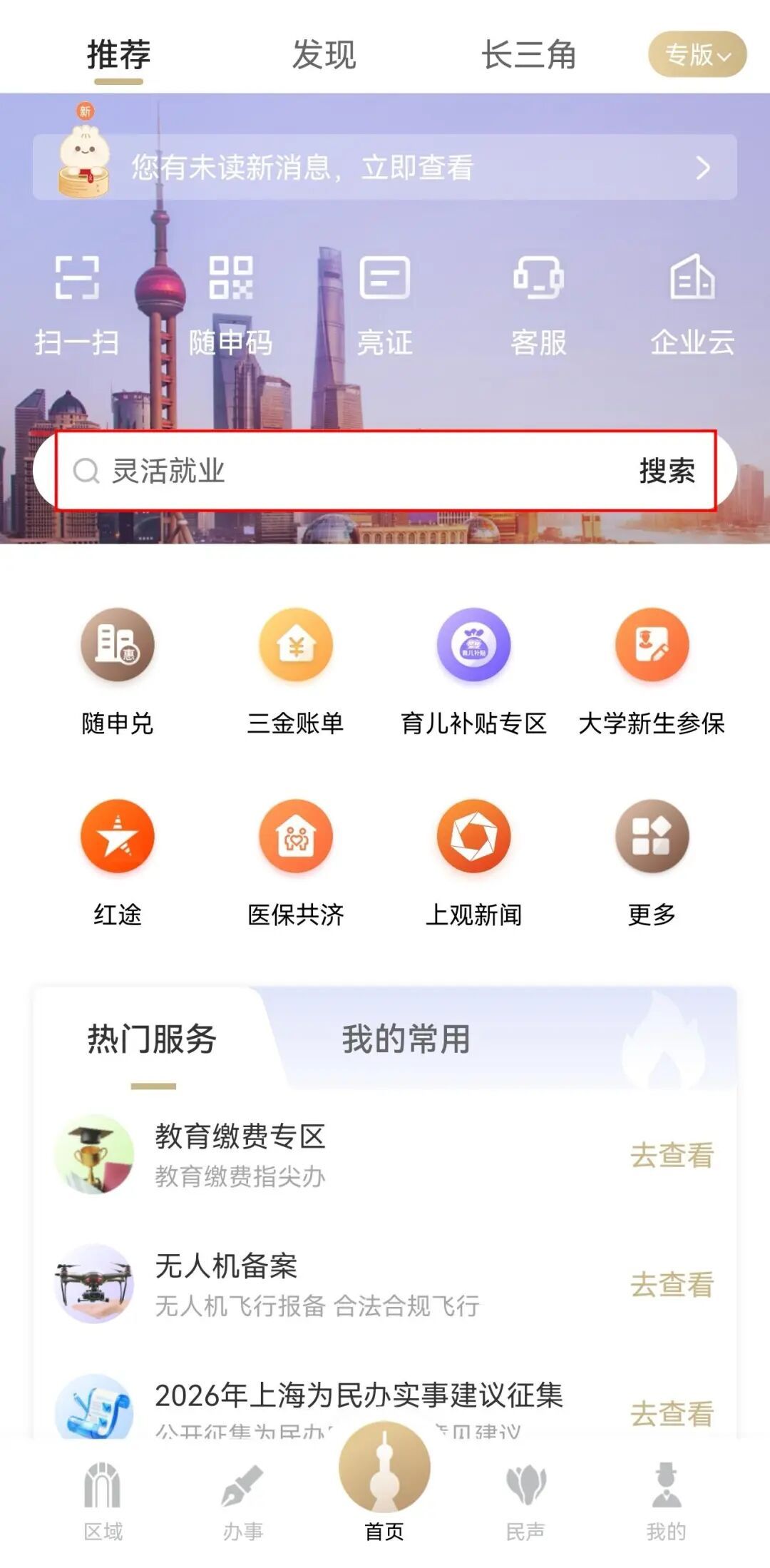 方式二:打开“随申办市民云”APP或小程序,首页搜索并进入“社保地图”应用服务。