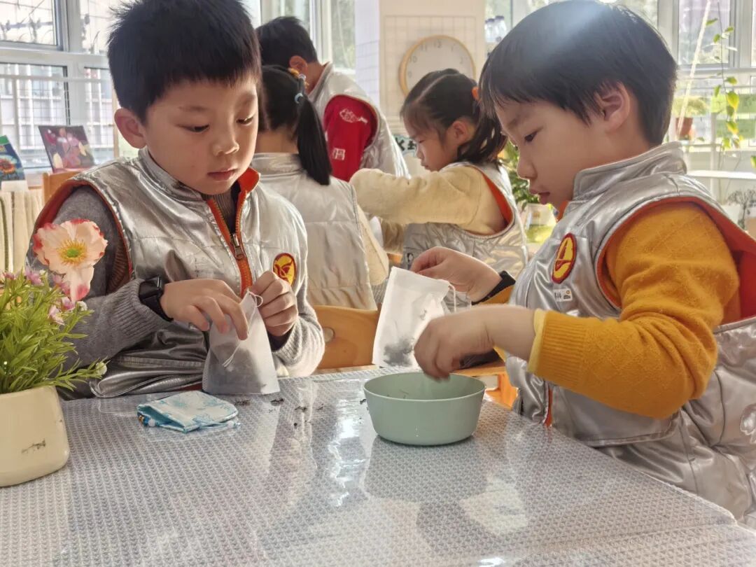 活动中,幼儿们化身“小小中药师”,在志愿者指导下亲手制作中草药香囊。从辨识药材、调配“秘方”到填装香囊,孩子们专注投入,通过触摸、嗅闻等方式,直观感受中医文化的独特韵味。一枚枚香囊不仅是孩子们的作品,更成为连接他们与传统文化的情感纽带,在动手实践中增强了文化认同与传承意识。