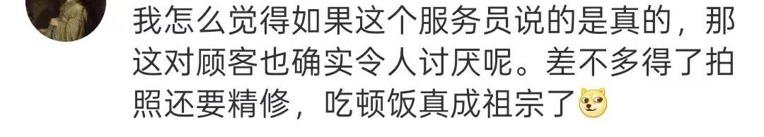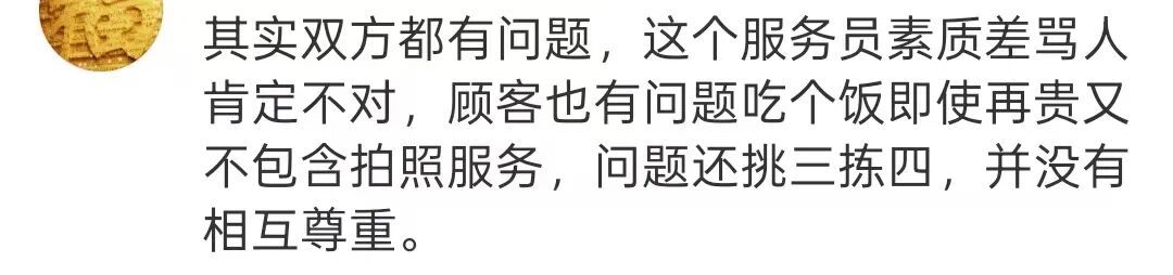 也有网友认为,服务员没有拍照的义务,且顾客多次重拍还要修图,要求过度了。