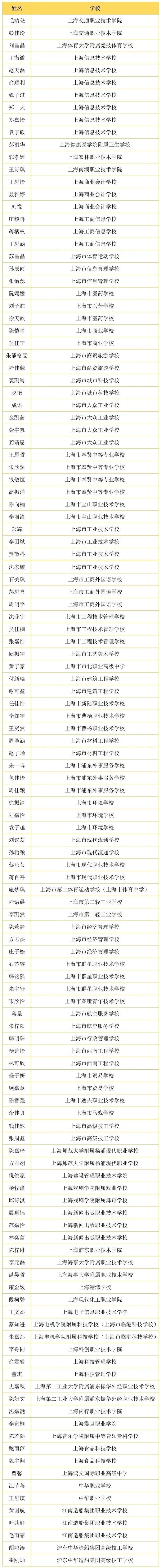 近日,教育部、人力资源社会保障部发布公告,公布2024—2025学年度中等职业教育国家奖学金获奖学生名单(点击左下角“阅读原文”查看全名单)。其中,上海共125名学生获得2024—2025学年度中等职业教育国家奖学金,祝贺他们!