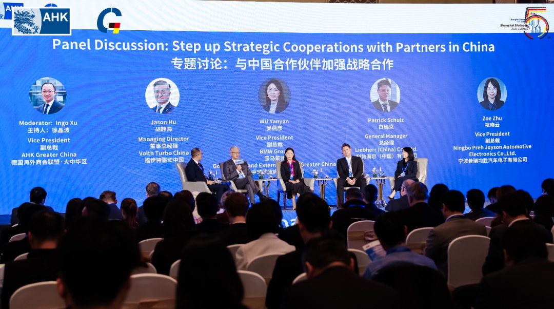 专题讨论由德国海外商会联盟大中华区副总裁徐晶波主持,福伊特驱动、宝马集团、利勃海尔、普瑞均胜等中德企业代表围绕“与中国合作伙伴加强战略合作”议题展开深入探讨。