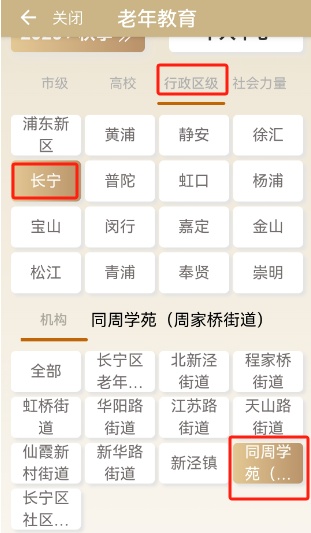 报名入口:“随申办”小程序或App—右上角⊕—长者专版—更多服务—老年教育—课程报名—行政区级—长宁—同周学苑。