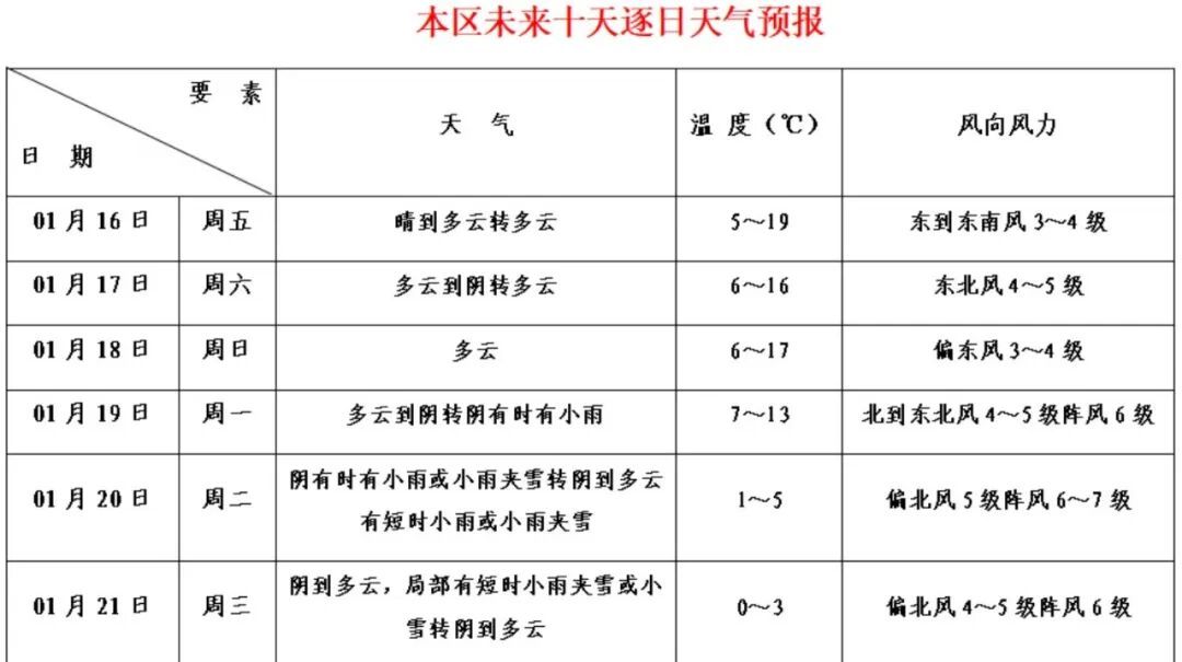 明天多云,东北风4~5级,相对湿度95%~55%,气温在9~15℃。需要注意的是今天半夜至明天早晨局部地区有雾,出行注意道路交通安全。火险等级气象指数:4级,易燃,注意用火用电安全。
