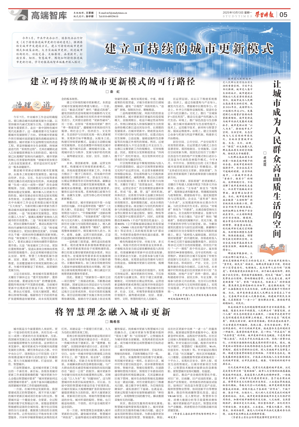 另一方面,将智慧理念深度融入城市更新的全过程,避免城市更新、智慧城市“两张皮”,是最终建成全域智慧城市的关键和保证。找准城市更新与智慧城市之间的融合点,让城市更新为智慧城市提供“现实土壤”和“应用场景”,让智能技术为城市更新全面赋能,实现两者的双向奔赴,成为城市更新达成智慧城市目标的必由之路。