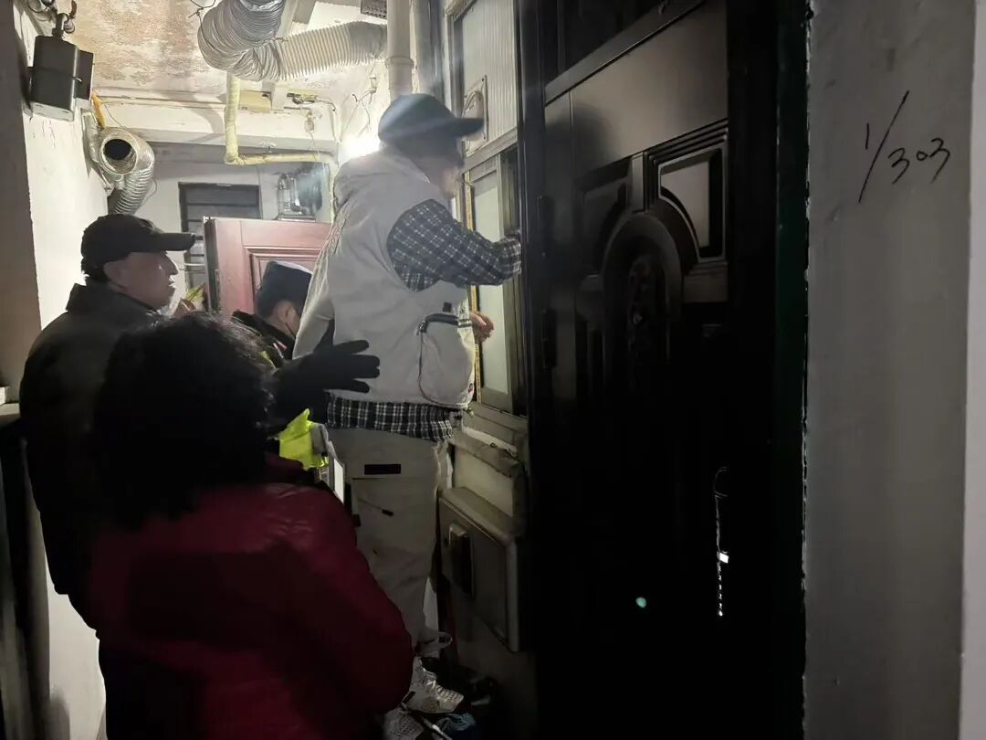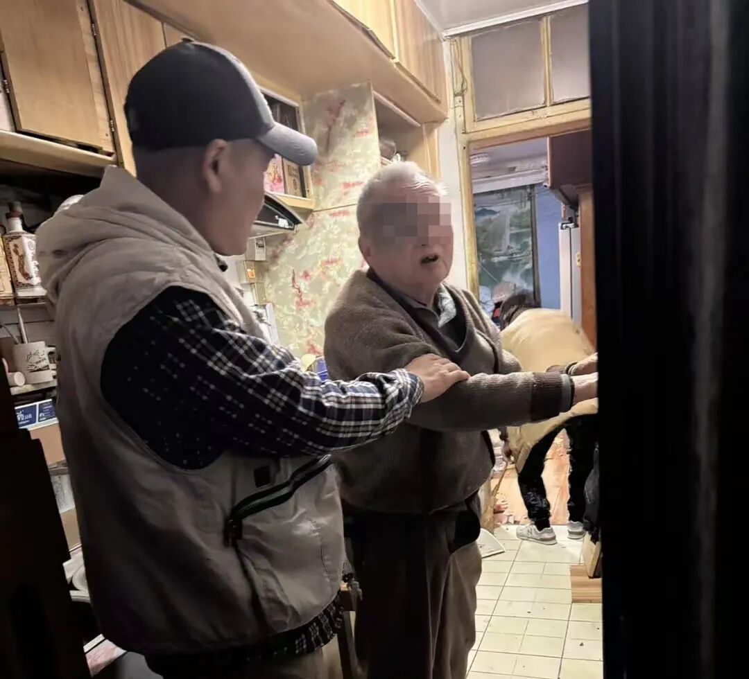 这天早晨,王雄宝巡查至冯老伯家附近时,隐约听见屋内传来呻吟声。他心头一紧,连忙呼喊,却无人应答。意识到情况不妙,他立即尝试开门,但电子锁无法打开。时间紧迫,王雄宝一边联系锁匠,一边找来凳子,小心撬开被杂物遮挡的窗户缝隙查看——只见冯老伯瘫坐在地,面色苍白、意识模糊。