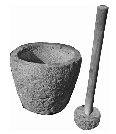 舂米是个诚实活,你不偷奸,它不欺你,你想图快,或少用力气,到了绷筛里就见分晓了。变成粉的筛下去了,留在上面的还等着你倒回去继续舂。在石臼面前,你只能老老实实,老实的标志是一下又一下地舂满九百九十九个上下。那个晚上,需要多少个九百九十九个上上下下?五个不行,六个七个可以了吧,米再多,十个八个总可以了吧。只有石臼知道这个总数。