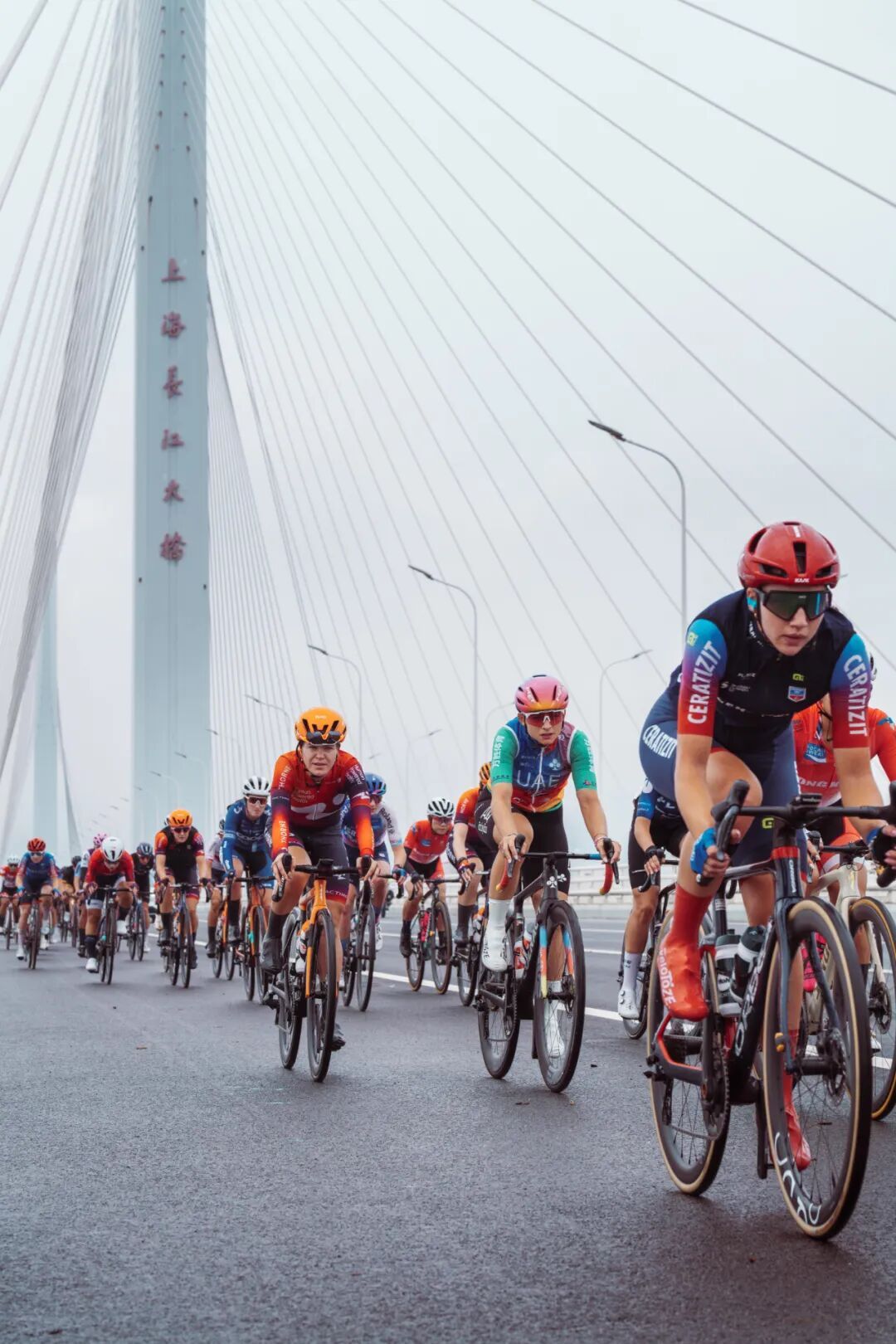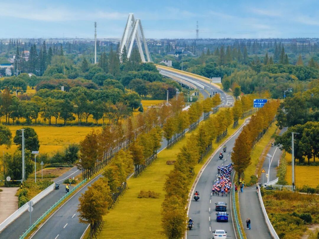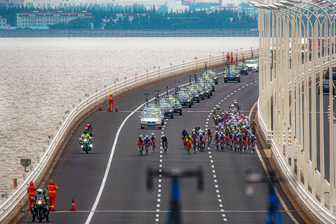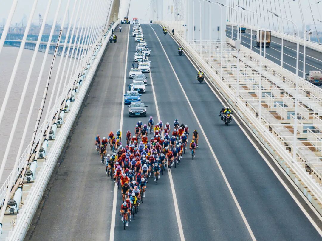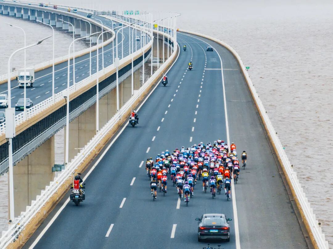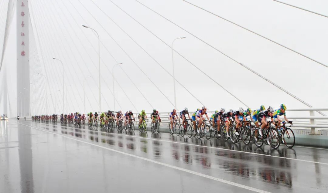 赛道的变迁,藏着崇明的成长。早期照片里,车轮碾过乡间小路,稻穗与骑行服相映;后来,上海长江大桥成为新地标,车手们迎着江风飞驰,江面波光与车轮残影,成了赛事最独特的“动态背景”。