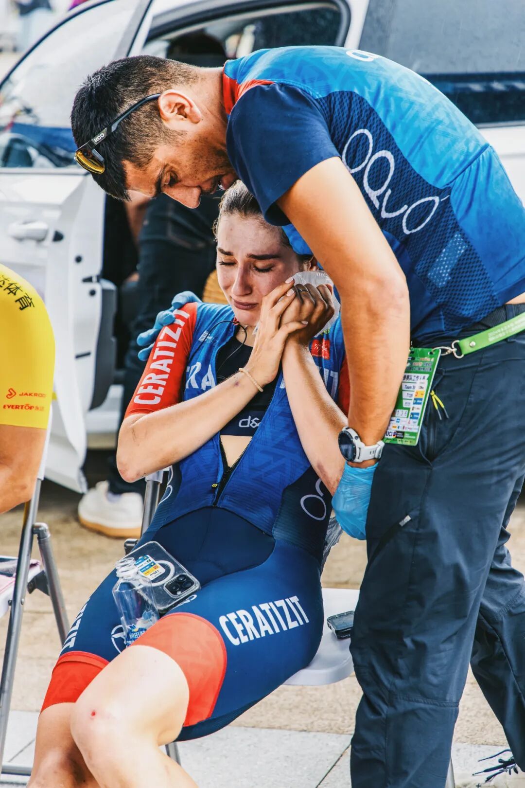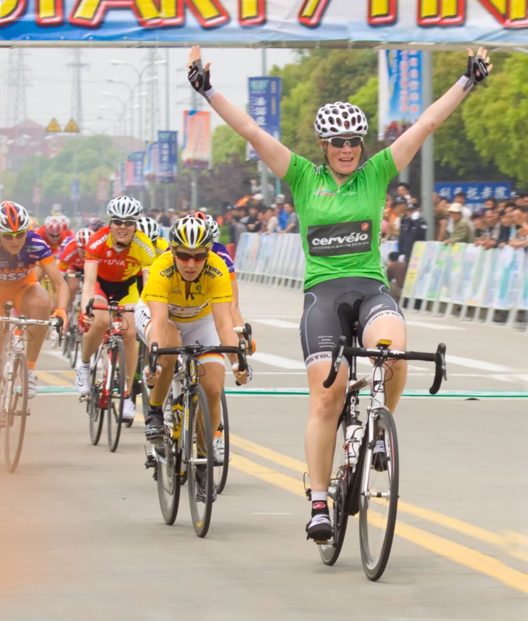每一张冲线照的背后,都藏着不为人知的坚持:有的车手攥紧车把,汗水浸透骑行帽,或许还带着前一刻摔倒的擦伤;有的与队友相拥,泪水混着笑容,胜利的喜悦中,含着对一路艰辛的释然。这些照片,记下了黄衫的荣耀,更记下了车手在赛道上,既敢追光、亦能抗摔的力量与光芒。
