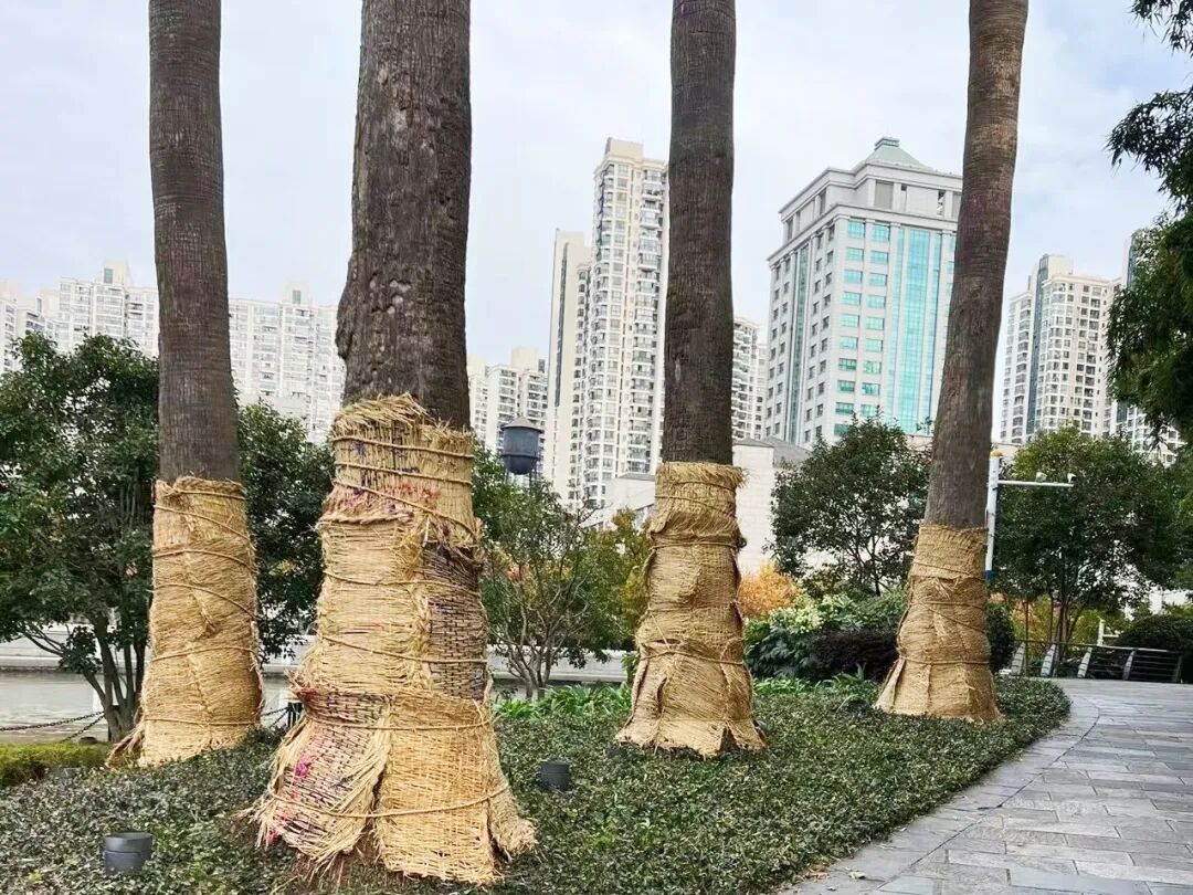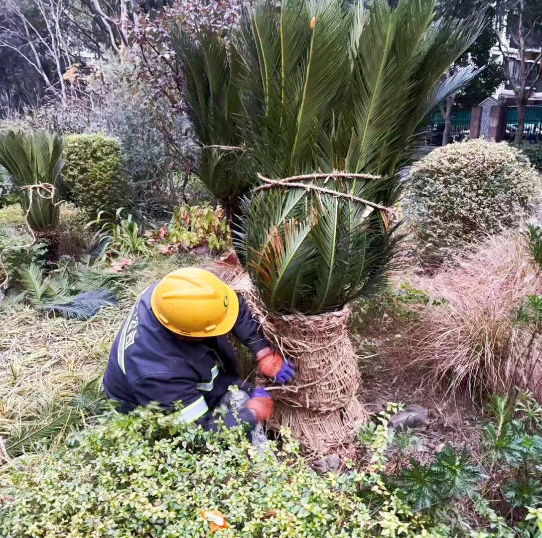 冬季防寒防冻不容忽视,普陀区的公园、绿地与行道树已悄然披上“冬装”。为保障区域绿化景观安全越冬,降低冰雪霜冻天气可能带来的影响,普陀区已完成今冬防寒抗冻系列养护管理工作,为区内植物筑牢越冬屏障。 针对公园中耐寒性较弱的植物,养护人员为41株苗木包裹了草帘,有效增强了其御寒能力。同时,对外露水管均进行包裹防护,避免因低温冻裂而影响正常供水。考虑到游客安全,养护人员还在饮水机周边等易结冰区域铺设了共计80平方米的防滑草垫,并通过加强巡逻疏导,切实防范游客滑倒风险。 公共绿地与行道树的防护工作也扎实推进。养护人员对40余株铁树、7株华盛顿棕榈树完成了包草包扎作业,并对铜川路、石泉路、光复西路等路段的170余株栾树实施了草绳绑扎处理,以减轻低温与风冻对树体的直接伤害。 此外,结合冬季修剪,养护相关部门已对海棠、桂花、石榴、木槿等约1500株苗木的病虫枝、枯枝进行了清理,既改善了树形,也减少了病虫害越冬基数,并在此基础上开展统一冬季施肥,为植物补充养分,增强其整体抗寒与抗病能力,助其积蓄能量以待春日复苏。 除了直接的植物保护,相关配套设施与场地的安全管理工作也在有序进行。相关管理部门对公园绿地中的电器线路、空中构筑物等进行了专项检查,及时消除火灾等安全隐患。 目前,普陀区冬季绿化防寒抗冻工作已基本完成。绿化养管相关部门将持续关注天气变化,全力保障区域绿化成果安全过冬,为市民营造一个既美观又安全的冬季城市环境。