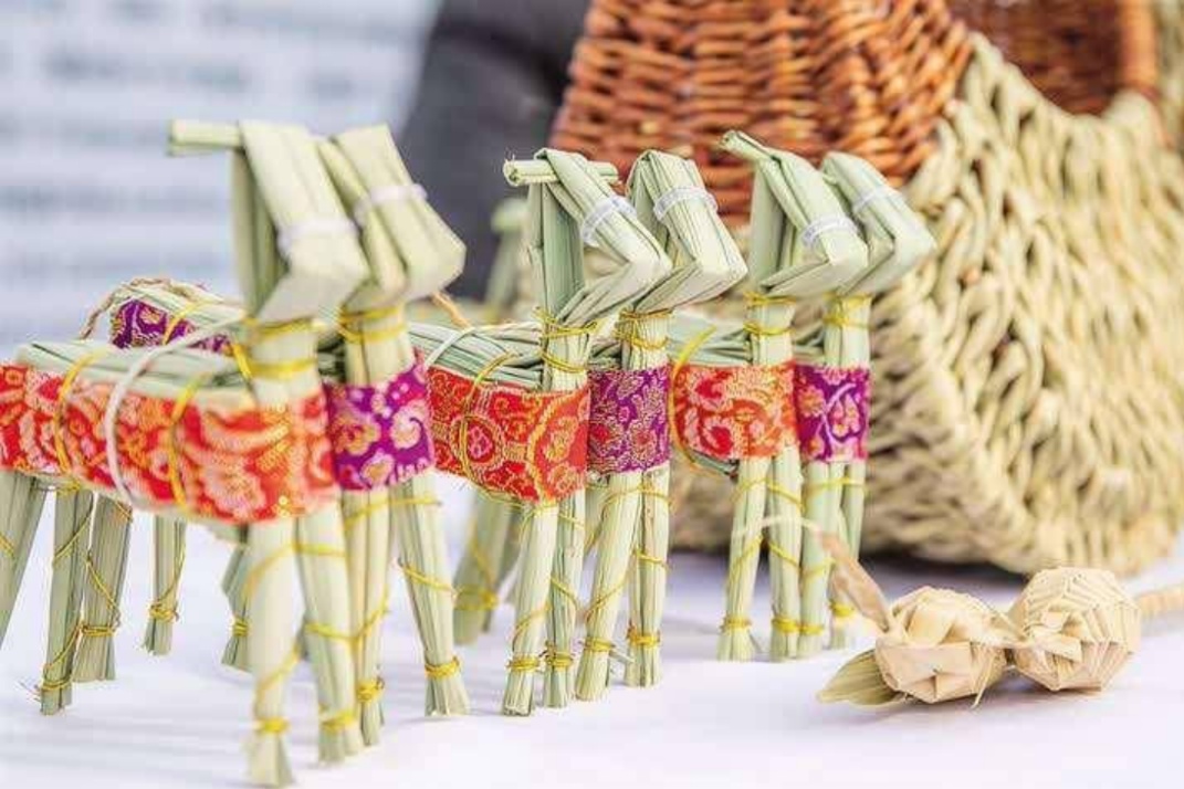 青浦区的茭白叶编织质朴天然,将田间废弃物化为实用艺术品。