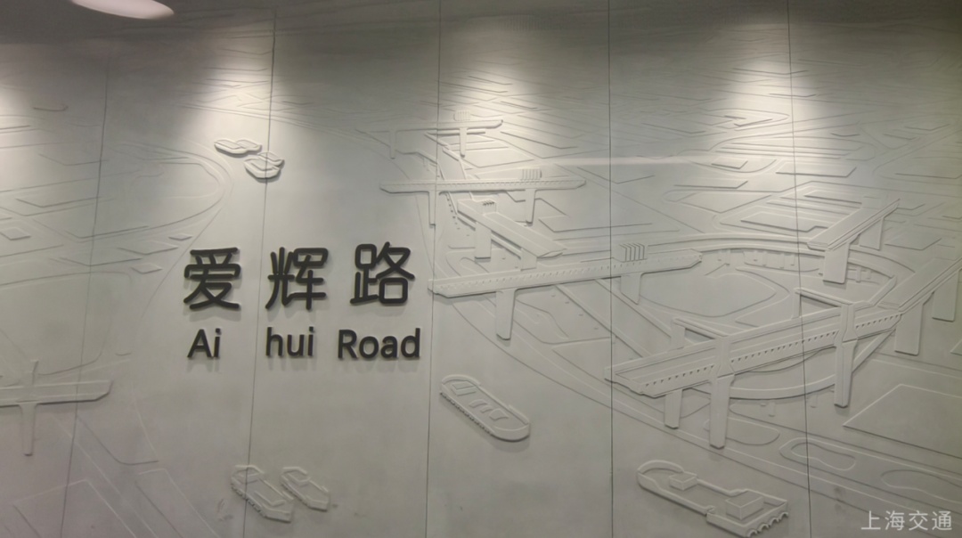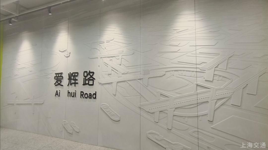 爱辉路站以青柠色绽放生机希望,站名墙再现了当年的储运码头现场情景。