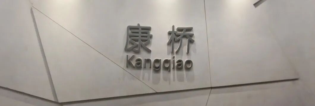 站名墙是一幅现代工业感十足的三角形、四边形拼图。1992年5月,周西乡、横沔乡位于城市外环线以北的8平方公里被辟建为上海浦东康桥工业区,1994年8月升格为市级工业区,并将规划范围扩大为26平方公里。
