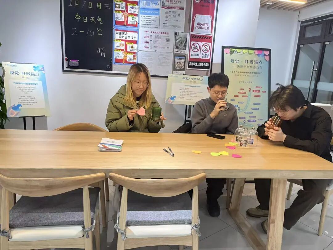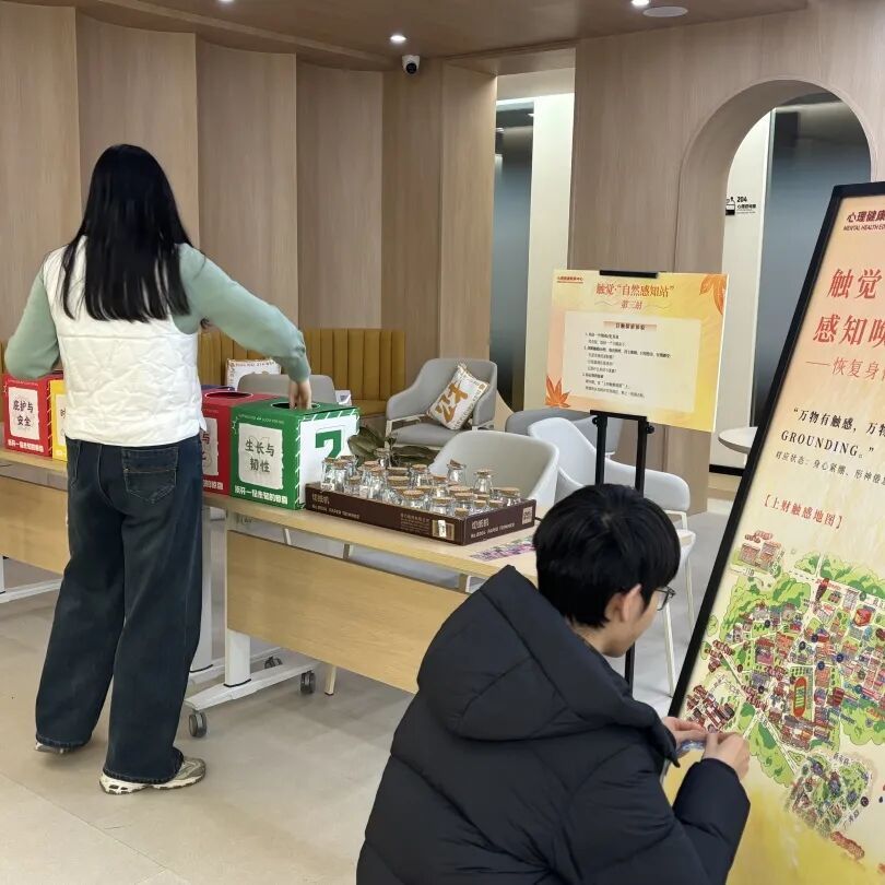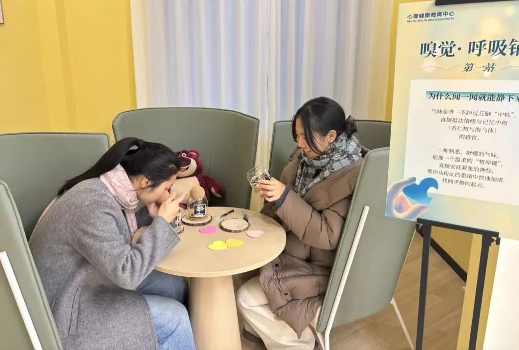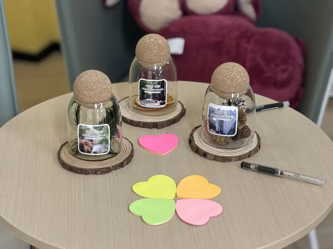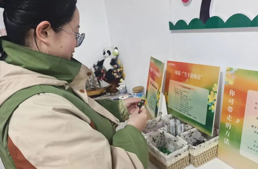 同学们走进这些特别空间,通过听、闻、触、看、尝五种感官体验,在熟悉的生活环境里,完成了一次次与自己的温柔对话,也带走了一套可以随时调用的“自我关怀工具箱”。