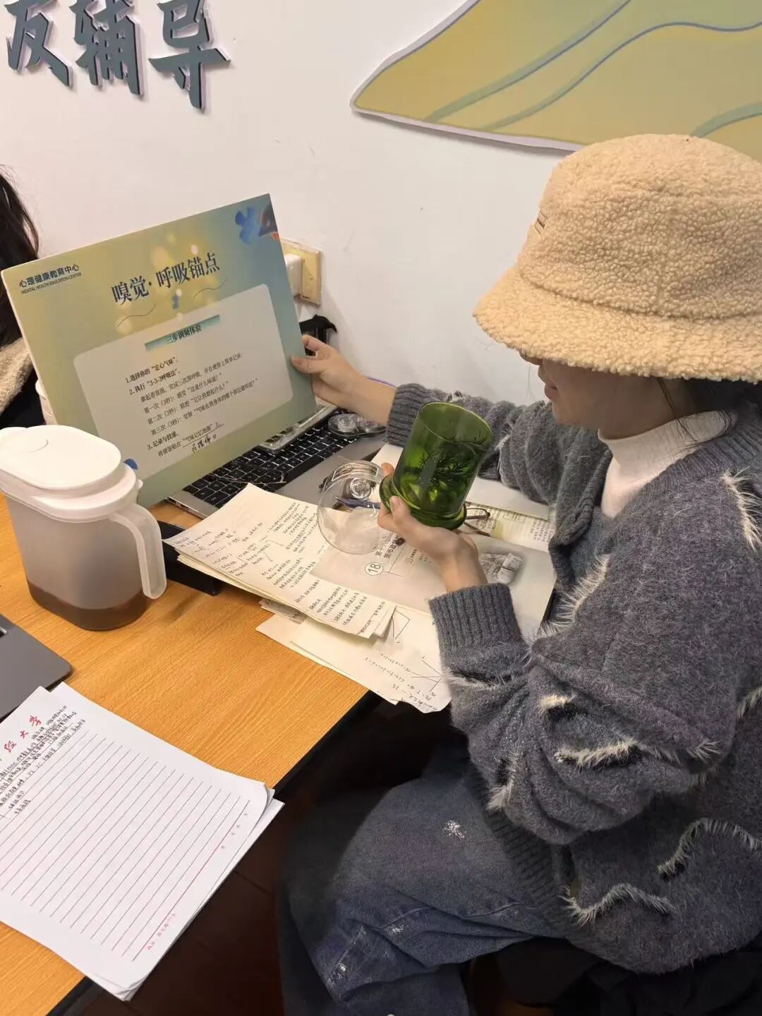 “多感官整合实验室”不是简单地提供放松,而是在传递一套可带走、可持续的自我调节方法。每个站点都对应着一种基于神经科学和临床心理学的调节技术,同学们在体验到的同时,也在学习如何将这些技巧迁移到日常学习中。活动现场设置的“原理揭示牌”和“可带走方法”,让心理知识变得亲切易懂。
