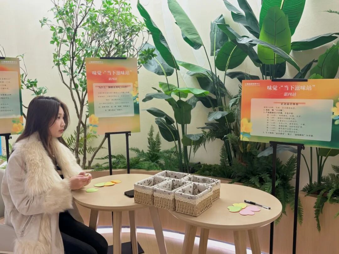 在味觉站点,同学们进行着最微小却最深刻的练习:用100秒,专注地品尝一颗糖。从观察它的纹理,到感受它在口中的融化,许多参与者第一次发现——放慢速度,才能尝出生活的甜度,重新找回对日常的觉察与珍惜。