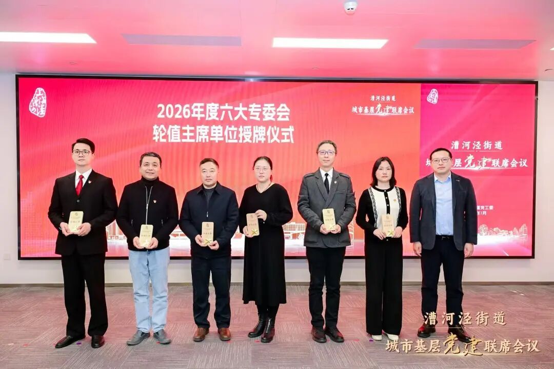 当天现场,徐汇万科中心楼宇党委和楼事会正式揭牌,通过“党委统筹、楼事会协同、企业共治”的三级机制,推动辖区企业从“被动参与”转向“主动共建”,让党建成为楼宇发展的“红色引擎”。中智经济技术合作股份有限公司、徐汇区综治中心、小米上海分公司等7家新会员单位签约入会,进一步扩容街道党建“朋友圈”。街道还根据成员单位特色,划分“法治建设”“营商服务”“科创金融”“医疗健康”“教育文化”“民生服务”六大专委会,推进19个共建项目,并为徐汇区人民法院、上海市第八人民医院、中国中学等6家单位颁发2026年度轮值主席聘书。