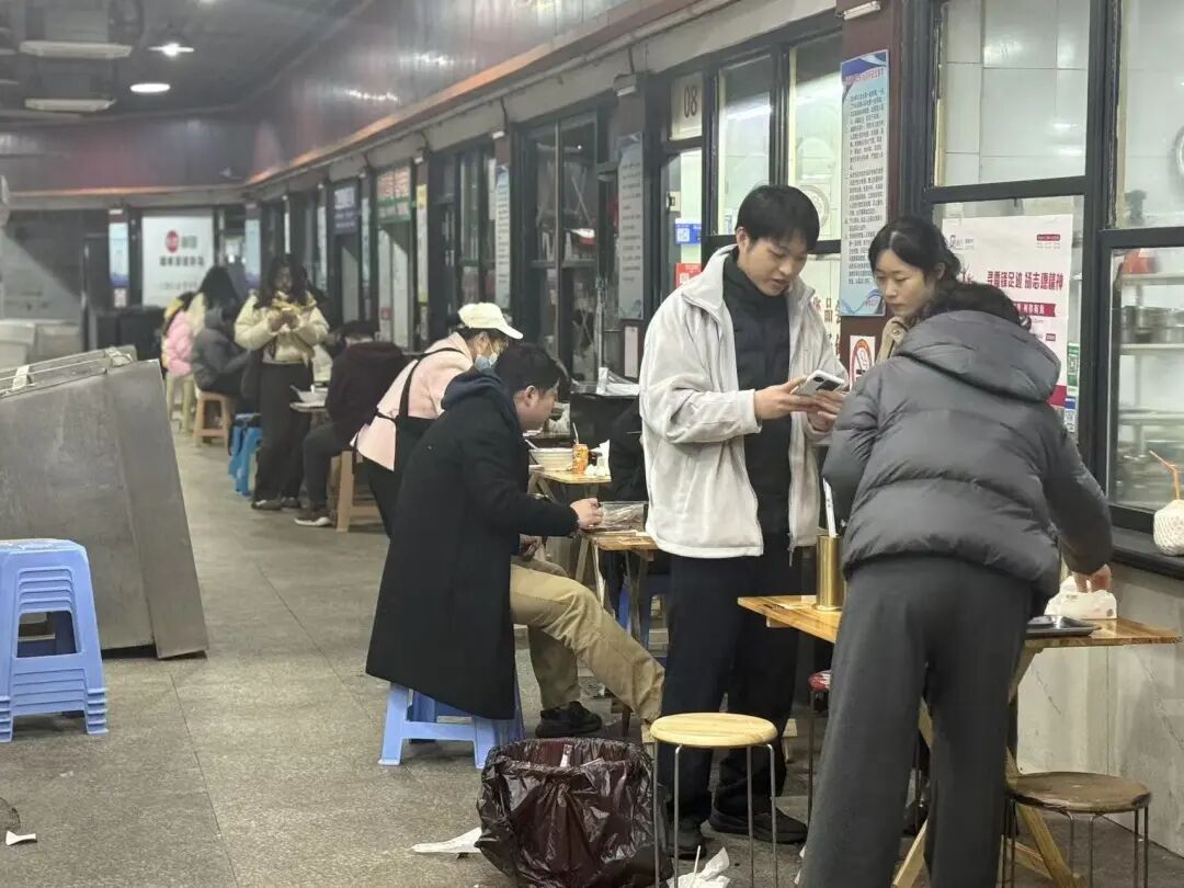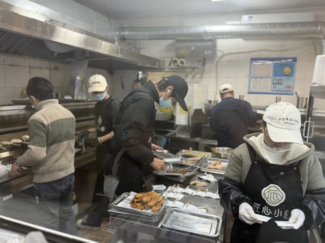 队伍排到了对面巷子口,肖勇不得不把“匠心小厨”的员工暂调过来,再和隔壁早餐店的老板商量,“白天他做早点,晚上盘下来安顿吃烧烤的食客”,然后又在菜市场的过道摆上桌椅。诸多忙碌的身影中,就有“匠心小厨”的店长朱佳骏。