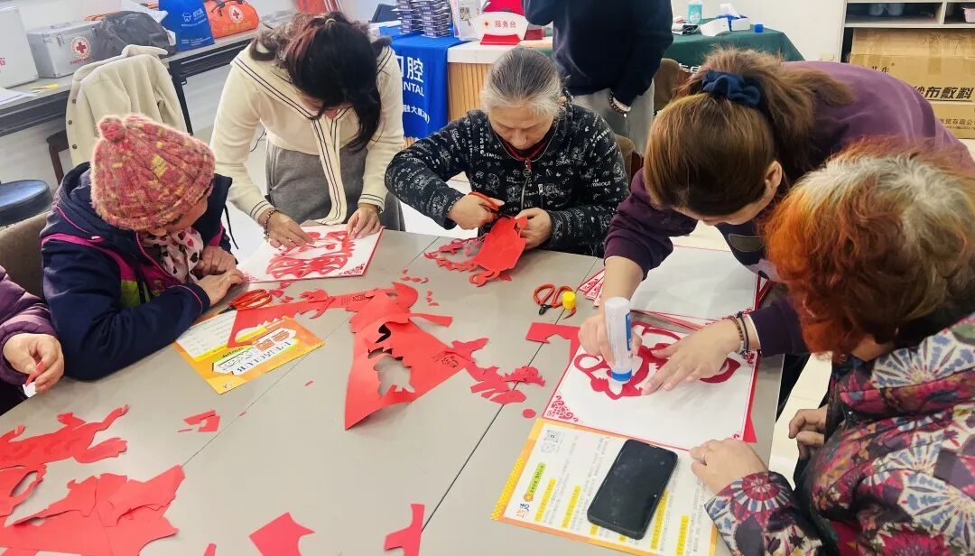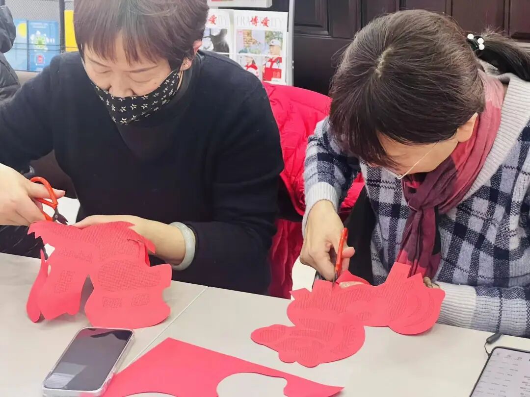 活动现场,只见长桌上铺满了红纸,十余位居民围坐桌旁,在讲师的指导下转动手中剪刀。“马上有福”“马上有钱”“小马醒狮”……他们手中,各种剪纸图案寓意吉祥、活泼可爱,饱含着社区和居民美好的新年祝愿。