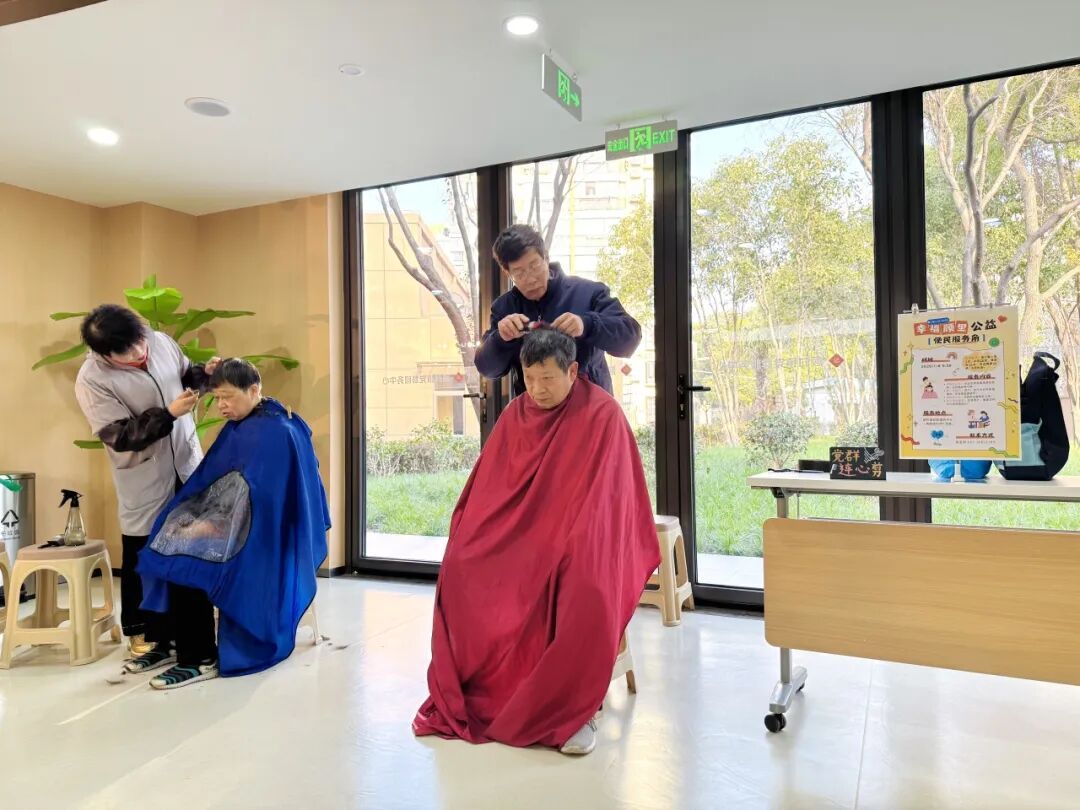 在“党群连心剪”区域,专业志愿者凭借精湛技艺,为居民们剪去旧岁的疲惫,焕发出新年的精气神。阿姨们连声说谢谢!