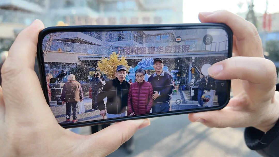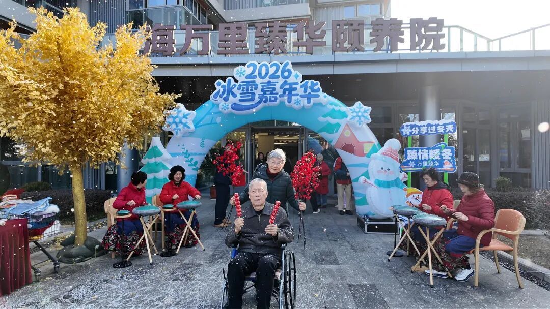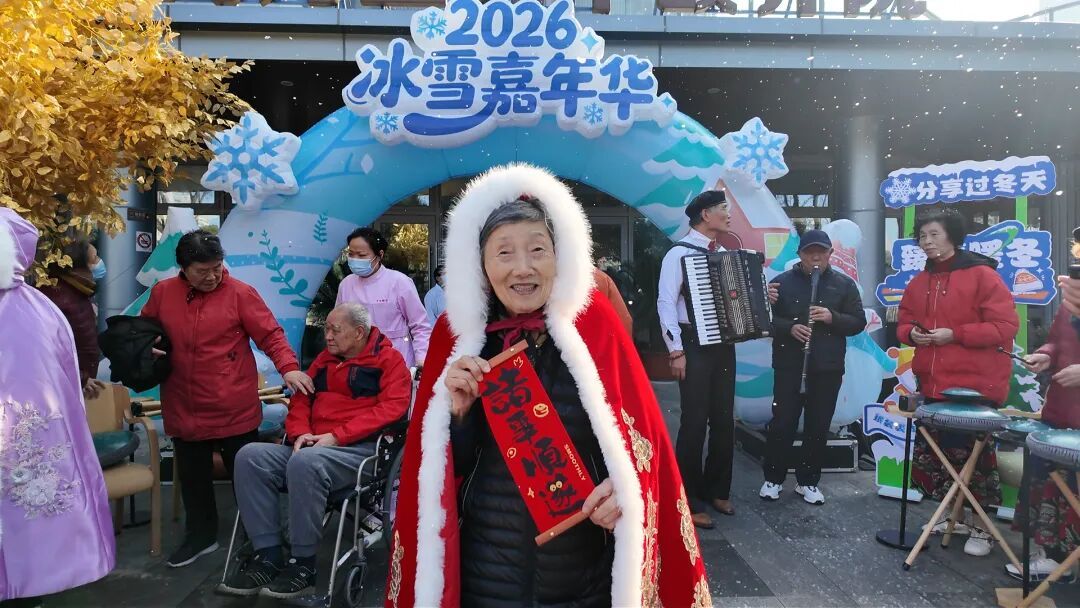 这个冬天,在普陀区中环集团旗下的万里臻华颐养院里,老人们见证了一场奇妙的“太阳雪”。1月16日上午,院前广场被精心布置成了一个小小雪乡,两台造雪机吹出的白色“雪粒”纷纷扬扬地落下。老人们裹着厚实暖和的斗篷,手里拿着腊梅花、糖葫芦、油纸伞等道具,围聚在这场特意为他们打造的冬日奇景中拍照、谈笑。浓浓的年味,似乎比日历更早地抵达了这里。 86岁的谢伯伯和老伴早早便下楼“取号”,排队等待拍照:“上海平时难得下雪,这些装置恰好弥补了冬季缺少的那份冰雪氛围。” 谢伯伯和老伴年轻时热爱山水,唯独北方没有去过,如今年事已高,冰雪风光便成了心中的一桩遗憾。“哈尔滨那些地方,一直想去没去成。今天这个虽然是人造的,但看着也很开心。要是有朝一日能享受到天然的雪景,那就更心满意足了。” 谢伯伯话语里那份未竟的向往,藏着许多南方老人对冰雪的憧憬。而这小小的“人造雪景”,正努力为他们的遗憾做一些小小的弥补。不少老人伸出手,轻轻接住飘落的“雪花”,笑得像个孩子。谈起儿时记忆里的雪,曹阿婆的感受截然不同:“我们小时候在乡下,一到下雪天就特别冷,又没有暖和的衣服穿,积雪厚得不得了,都到膝盖那么深。”对比现在,“暖洋洋”的雪一点都不冷,“多漂亮呀,不能比的。” 工作人员忙前忙后,给老人们拍照。长廊上,火红的窗花、苍劲的福字、挂满祝福的红包墙,早已将空间装点得喜庆十足。这场热热闹闹的“人造雪景”和日渐浓郁的年味,或许比不上北方真正的漫天大雪,却让这个原本平常的上午,变得格外有意义。 从记忆深处“冰冰冷”的艰苦岁月,到眼前“暖洋洋”的浪漫造景,这场特意准备的“太阳雪”,下进了老人们的心里,化作他们脸上最真挚的笑容。曹阿婆反复念叨着:“他们(养老院)是真心为我们老年人着想,我感觉心里很温暖、很幸福。”