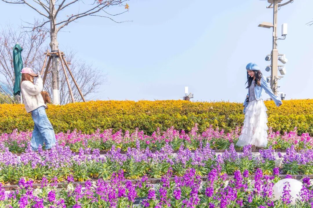 本周上海暖意十足 连续三天最高气温逼近20℃ 也让北外滩东岸绿地的 紫罗兰花海提早进入盛花期 这里共栽种了约14000株 高杆紫罗兰 玫红、淡紫、白色、红色 樱桃粉等各色花朵肆意绽放 交织成一片绚烂海洋 对岸的东方明珠、上海中心大厦等 陆家嘴标志性建筑 在花影间若隐若现 按下快门的瞬间 魔都的现代天际线与自然景致 在此定格 微风轻拂时 整片花海掀起层层波浪 空气中弥漫着淡淡花香 让人心旷神怡 这几日“暖如春”的天气让紫罗兰绽放得更加灿烂。但好天气不等人,气象部门预测,下周上海将迎来明显降温,一股较强冷空气将导致气温骤降,或伴随雨雪天气。 记者:陈怡 图片:杨伯荣 视频:刘文 编辑:陈怡