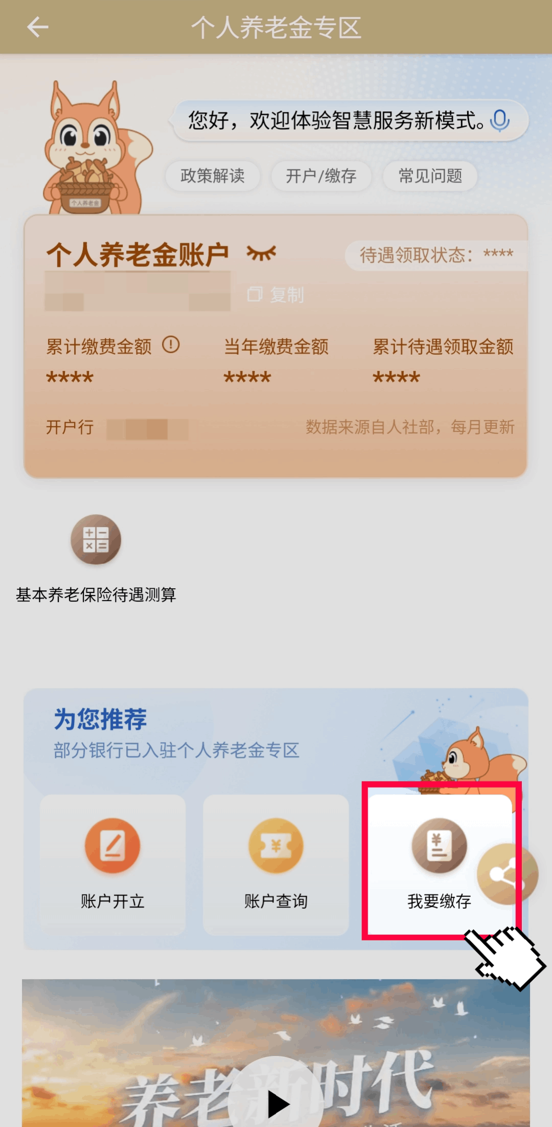 市大数据中心介绍,部分银行现已入驻“随申办市民云”APP个人养老金专区,通过专区即可开立账户、在线查询及缴存。哪些人可以参加个人养老金?参加个人养老金后,可以中途把钱取出来吗?如何享受税收优惠?一起来看↓ 点击“划重点”极速浏览↓↓↓ 个 人 养 老 金 个人养老金是政府政策支持、个人自愿参加、市场化运营的补充养老保险制度。 不仅可以在基本养老保险的基础上,为参加人再增加一份积累,退休后再多一份收入,同时可以帮助个人理性规划养老资金,还能享受税收优惠政策! 01 个人养老金专区 账户开立、账户查询、在线缴存 个人养老金专区 打开“随申办市民云”APP,首页搜索“个人养老金”找到“个人养老金专区”,即可在线进行个人养老金账户开立、账户查询及缴存。 个人养老金账户开立 点击“申请开立账户”,选择专区内对应的开户银行,点击“去开户”,根据页面提示先开立“个人养老金账户”,再开立“个人养老金资金账户”。 个人养老金账户查询 开立账户后,返回专区首页即可一键查看账号、缴费金额、待遇领取金额、开户行等个人养老金账户信息。 点击“账户查询”,点击“眼睛”图标,完成身份验证后还可进一步查询个人养老金资金账户、个人养老金可用余额、本年可用缴费额度等更多账户信息。 个人养老金缴存 参加人可在自然年度内按月、分次或者按年度自愿缴费。目前,缴纳个人养老金额度上限为12000元/年。每年12月31日前缴存个人养老金,可在限额内据实享受当年度个人所得税扣除。 进入专区页面后,点击下方“我要缴存”按钮,可直接进行个人养老金缴存(目前支持交通银行、工商银行、招商银行、广发银行、建设银行)。 02 热门问答 这些内容一次看懂 哪些人可以参加个人养老金? 个人养老金的参加人应当是在中国境内参加城镇职工基本养老保险或者城乡居民基本养老保险的劳动者。 已领取基本养老金的个人,不能再开立个人养老金账户。 个人缴纳个人养老金后,如何享受税收优惠? 个人养老金实施递延纳税优惠政策。 个人向个人养老金资金账户的缴费,按照12000元/年的限额标准,在综合所得或经营所得中据实扣除; 计入个人养老金资金账户的投资收益暂不征收个人所得税; 个人领取的个人养老金,不并入综合所得,单独按照3%的税率计算缴纳个人所得税。 参加个人养老金后,可以中途把钱取出来吗? 个人养老金资金账户封闭运行。参加人达到下列条件之一的,可以领取个人养老金: (一)达到领取基本养老金年龄; (二)完全丧失劳动能力; (三)出国(境)定居; (四)申请领取个人养老金之日前12个月内,本人或配偶、未成年子女发生的与基本医保相关的医药费用支出,扣除医保报销后个人负担(指医保目录范围内的自付部分)累计超过本省(自治区、直辖市)上一年度居民人均可支配收入的; (五)申请领取个人养老金之日前2年内,领取失业保险金累计达到12个月的; (六)正在领取城乡最低生活保障金的。 参加人死亡的,其个人养老金资金账户中的资产可以继承。 参加个人养老金要开立个人养老金账户和个人养老金资金账户,两个账户有什么区别? 个人养老金账户是个人养老金信息管理服务平台为参加人开立的唯一账户,用于登记和管理个人身份信息,并与基本养老保险关系关联,记录个人养老金缴费、投资、领取、抵扣和缴纳个人所得税等信息,是参加人参加个人养老金、享受税收优惠政策的基础。 个人养老金资金账户是指参加人在商业银行开立的,用于个人养老金缴费、归集收益、待遇领取和缴纳个人所得税的专用人民币结算账户。个人养老金资金账户作为特殊专用资金账户,参照个人人民币银行结算账户项下Ⅱ类户进行管理。 个人养老金资金账户与个人养老金账户绑定。需要说明的是,这两个账户是个人养老金制度内的账户,不同于基本养老保险和企业年金、职业年金的个人账户。 个人可以更换个人养老金资金账户的开户行吗? 可以。参加人可以在不同商业银行之间变更其个人养老金资金账户。 参加人办理个人养老金资金账户变更时,应向原商业银行提出,经人社部信息平台确认后,在新商业银行开立新的个人养老金资金账户。 个人养老金资金账户里的资金怎么使用? 个人养老金资金账户里的资金,可以自主选择购买经金融监管部门确定的储蓄存款、理财产品、商业养老保险、公募基金、国债等个人养老金产品。