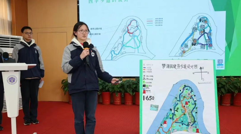 在“梦清园上的细腰带”跨学科项目中,九年级学生季诺使用AI图像叠加功能,绘出梦清园健身步道旁的基础设施图,“想改哪里随时能调,创意不用等,很快就能落地,特别方便。”