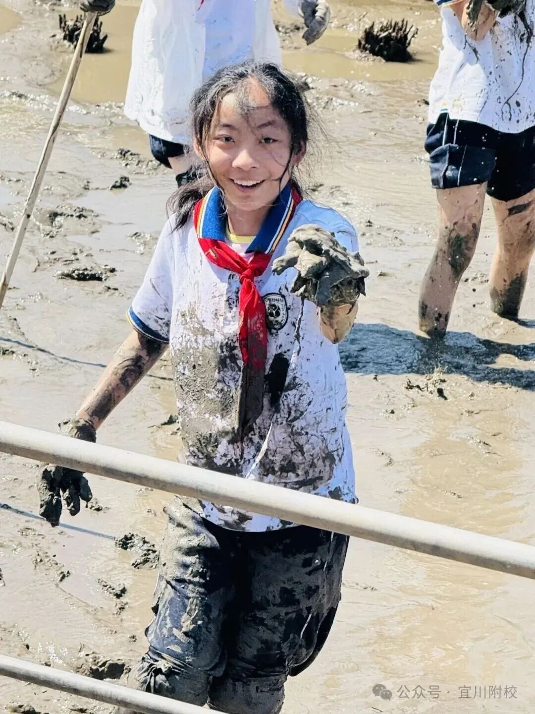 2025年暑期,宜川附校学生带着研学项目“稻-蟹-鳖共生基地研学”来到崇明。换好下塘的靴子、戴上手套,孩子们迫不及待地“下塘捉鳖”。半个多小时里,最多的同学摸到8只甲鱼,还摸出了“门道”——“甲鱼喜欢躲在稻茬旁”,他们对稻鳖共生也有了更真实的感受,“甲鱼不是‘破坏者’,是稻田‘合伙人’。”