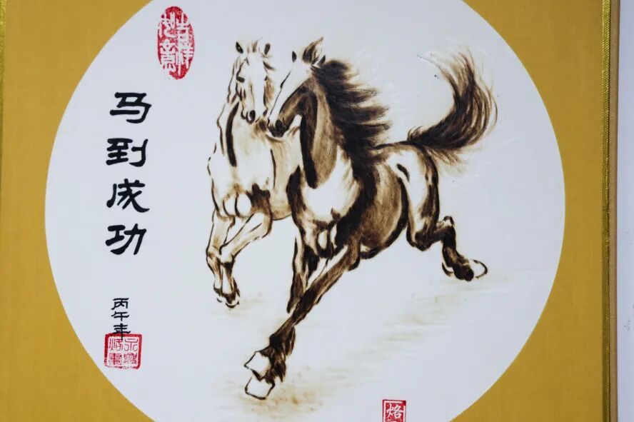 焦永兴告诉记者,烙铁画的烙制过程极其考验耐心与技巧。为了呈现出最佳效果,他早在2025年4月便着手筹备,还查阅了不少资料,精心烙制了骏马长卷以及80余幅马年主题挂历。