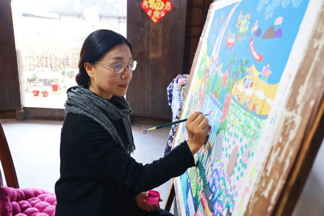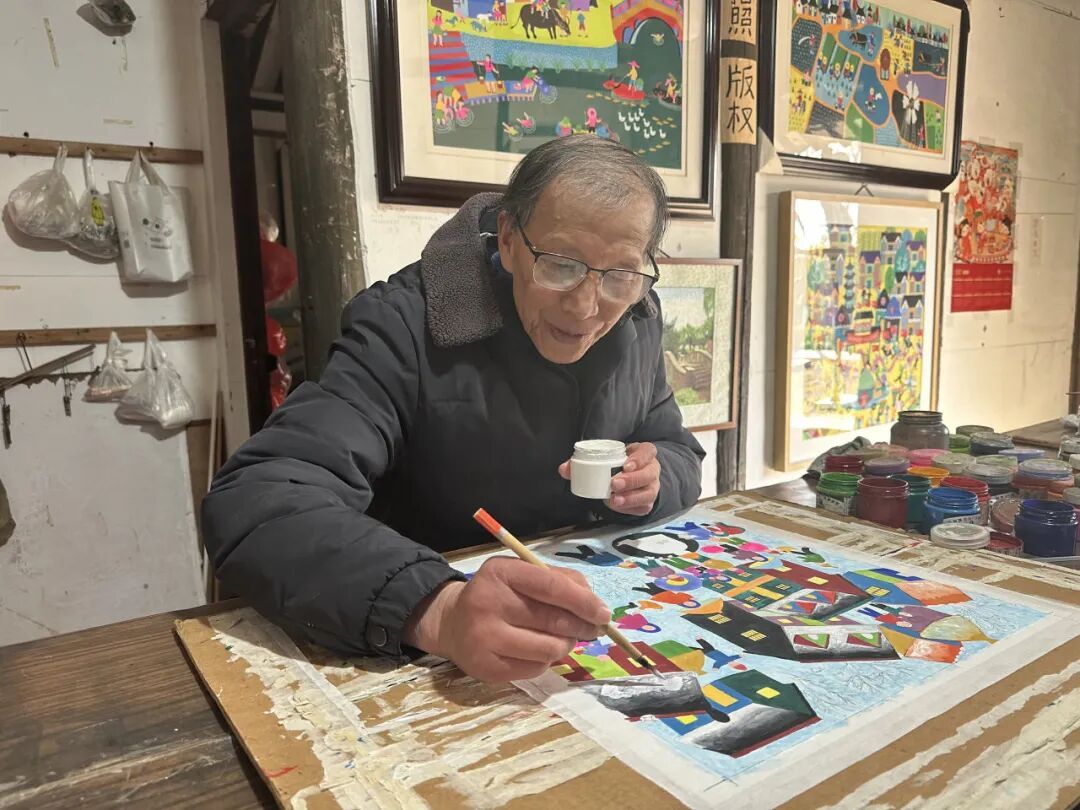 日前,枫泾古镇中国农民画村也迎来一批特色新作——金山农民画两位画师陈卫雄、陈惠方的马年主题作品正式亮相,以浓墨重彩的乡土笔触,勾勒江南新春的热闹盛景。