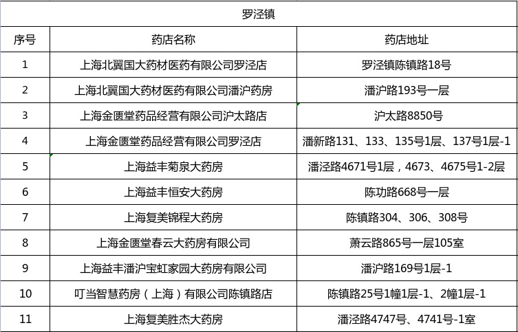 截至2026年1月14日,宝山区域内医保定点药店机构数达294家,以下信息按街镇分布排列: