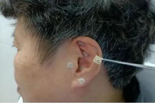耳穴疗法指以全息理论为指导,通过王不留行籽、磁珠或耳针刺激耳穴来调节相应身体脏腑疾病的治疗方法。常选用的耳穴有肾上腺、交感、内分泌、内耳、外耳、肾、肝等。