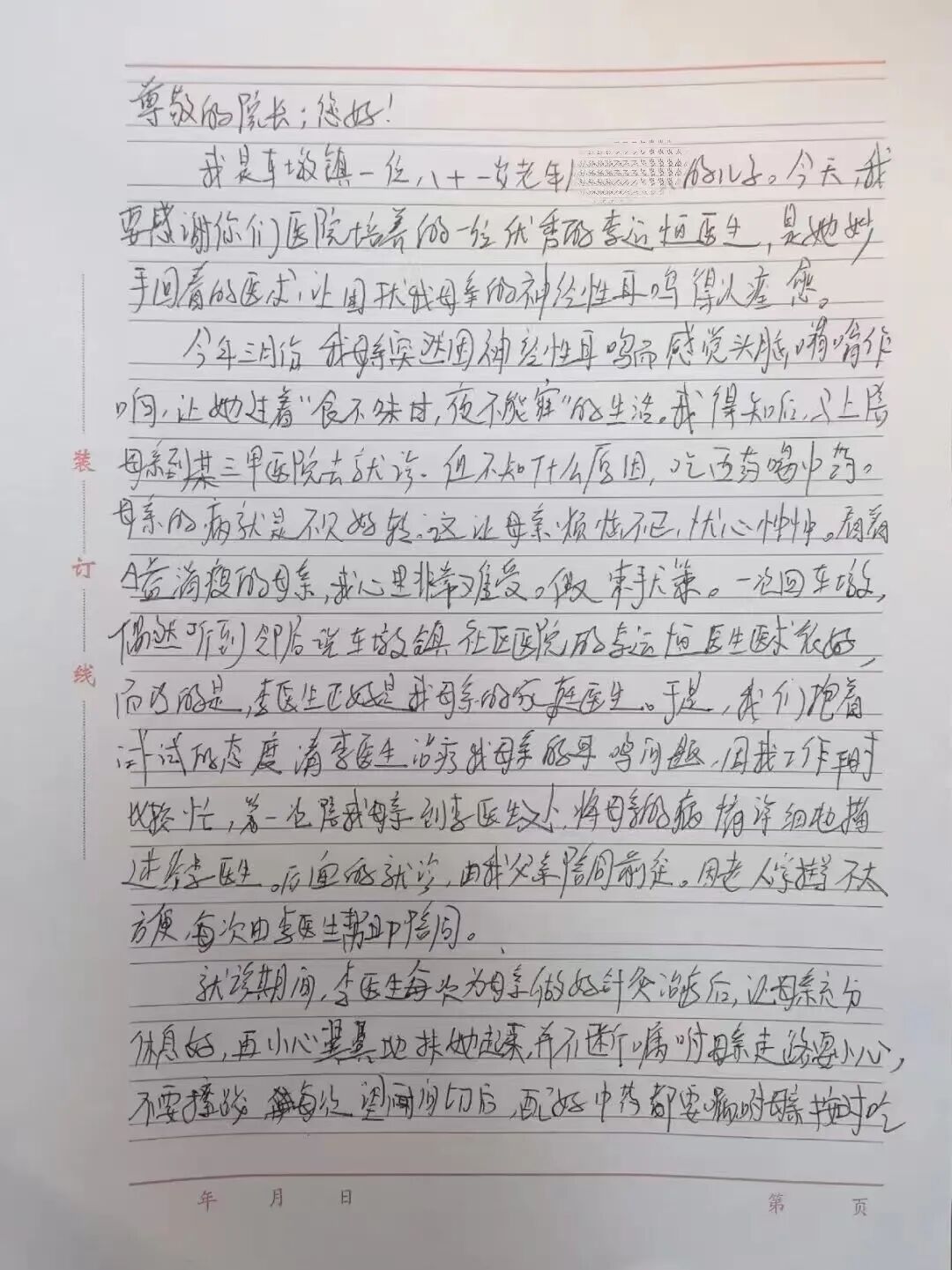 经过近两个月的精心治疗,张先生母亲的神经性耳鸣痊愈了,老人儿子深情写下了一封千字手写感谢信,这是耳病专病门诊众多案例中的一个缩影。