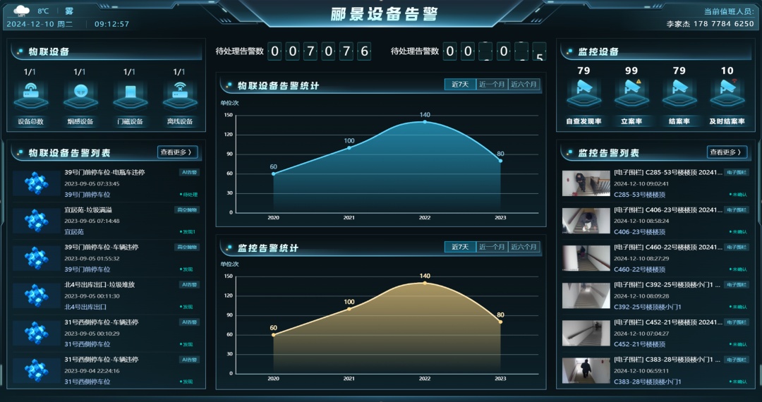 设备稳定运行与社区安全是物业服务的核心根基。公司建立设备全生命周期台账,部署物联网感知终端,推动运维服务智慧升级。在住宅项目,智能监控系统可全天候识别车辆违停、电瓶车入梯、消防通道占道、高空抛物等30余类安全风险,发现异常即时告警、快速处置,筑牢社区安全防线;在商写项目,能源管理系统通过优化设备运行参数,实现节能降耗与舒适体验的双向兼顾,践行绿色低碳运营理念。