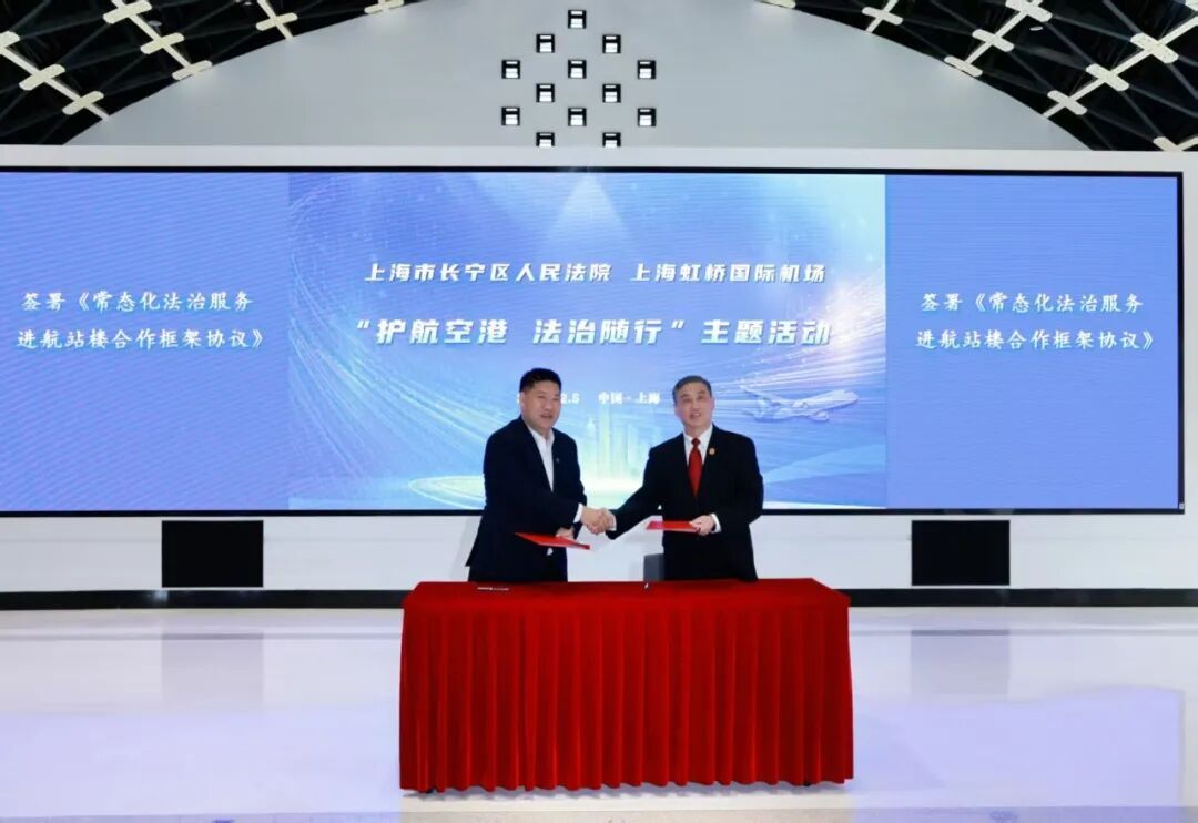 值得一提的是,2025年12月,区人民法院与上海虹桥机场签署了《常态化法治服务进航站楼合作框架协议》,确立设立法治服务巡回窗口、构建常态化普法宣传机制等五项合作机制,助力上海机场打造“全方位门户复合型国际航空枢纽”。