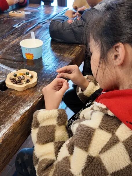 “我们下午刚到,体验了勇者闯关和咖啡豆手串的项目,一个比较刺激,另一个比较休闲,都很好玩!”小朋友宁海涛说。